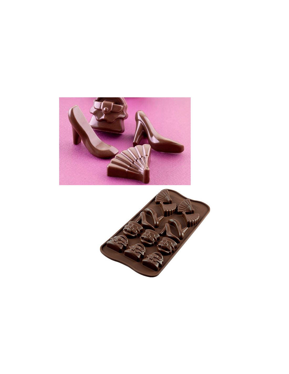 Molde de silicona alimentaria de la Serie Easychoc, de Silikomart.Molde en forma de diferentes motivos de desayuno.