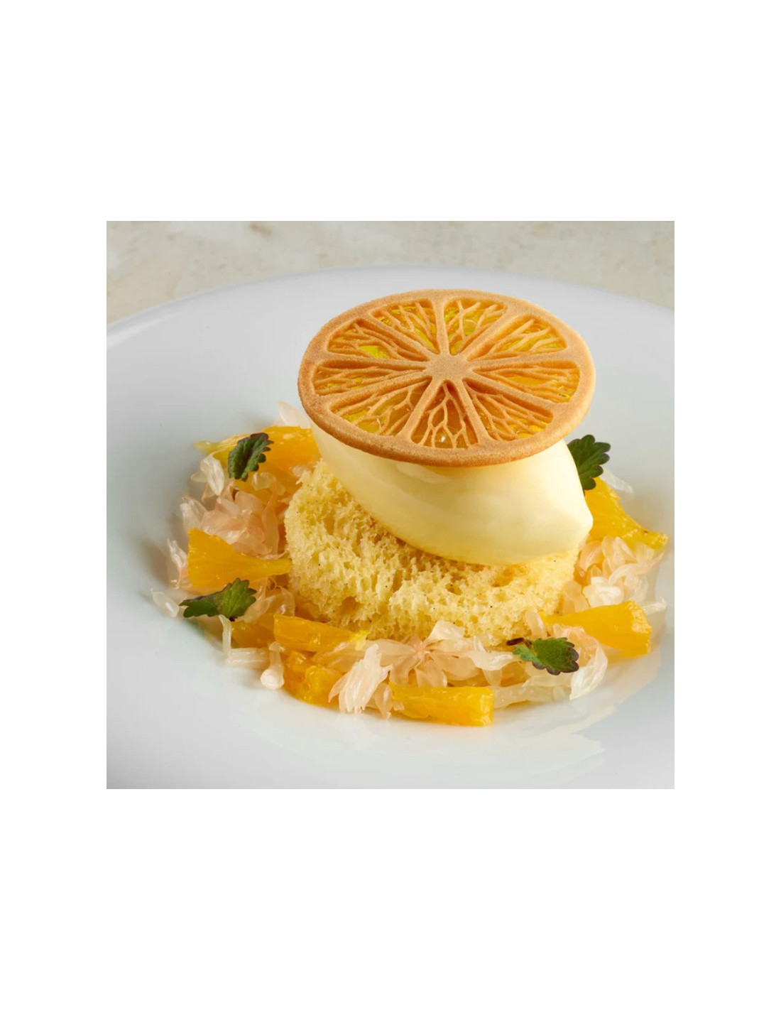 El Molde GG078 Citrus diseñado por Paolo Griffa es un molde profesional de silicona de alta calidad, ideal para la elaboración de postres inspirados en frutas cítricas. Su diseño preciso y elegante permite reproducir con gran realismo formas naturales, aportando un acabado sofisticado y atractivo a semifríos, mousses, bizcochos o elaboraciones de chocolate.