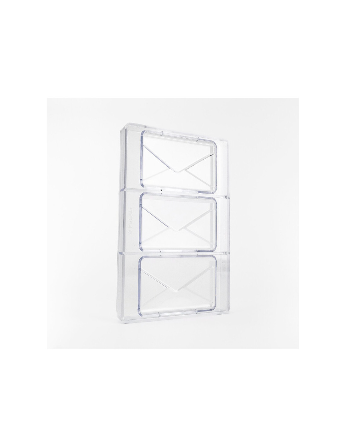 Molde para chocolate con forma de sobre, diseñado para crear tabletas huecas que permiten incluir mensajes en su interior.