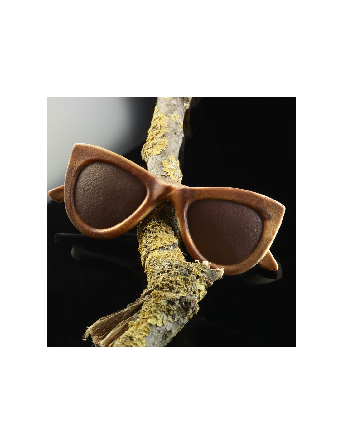 Molde en 2 piezas para crear gafas de sol femeninas en chocolate. Diseño estilizado, perfecto para pastelería creativa.