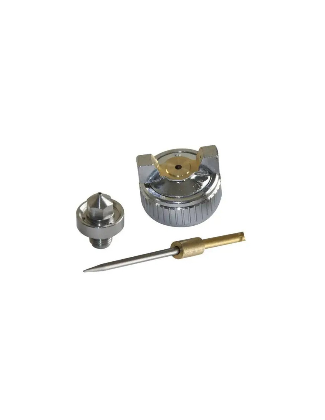 Mini pistola para aerografía Mota con sistema de gravedad HVLP (alto volumen, baja presión) modelo P800 con boquilla de 0,8 mm. Ideal para detalles, lugares pequeños y retoques. Incluye depósito metálico con tapa, pico de 0,8 mm, filtro plástico, acople racord hembra, kit de desarme y limpieza y manual con despiece.