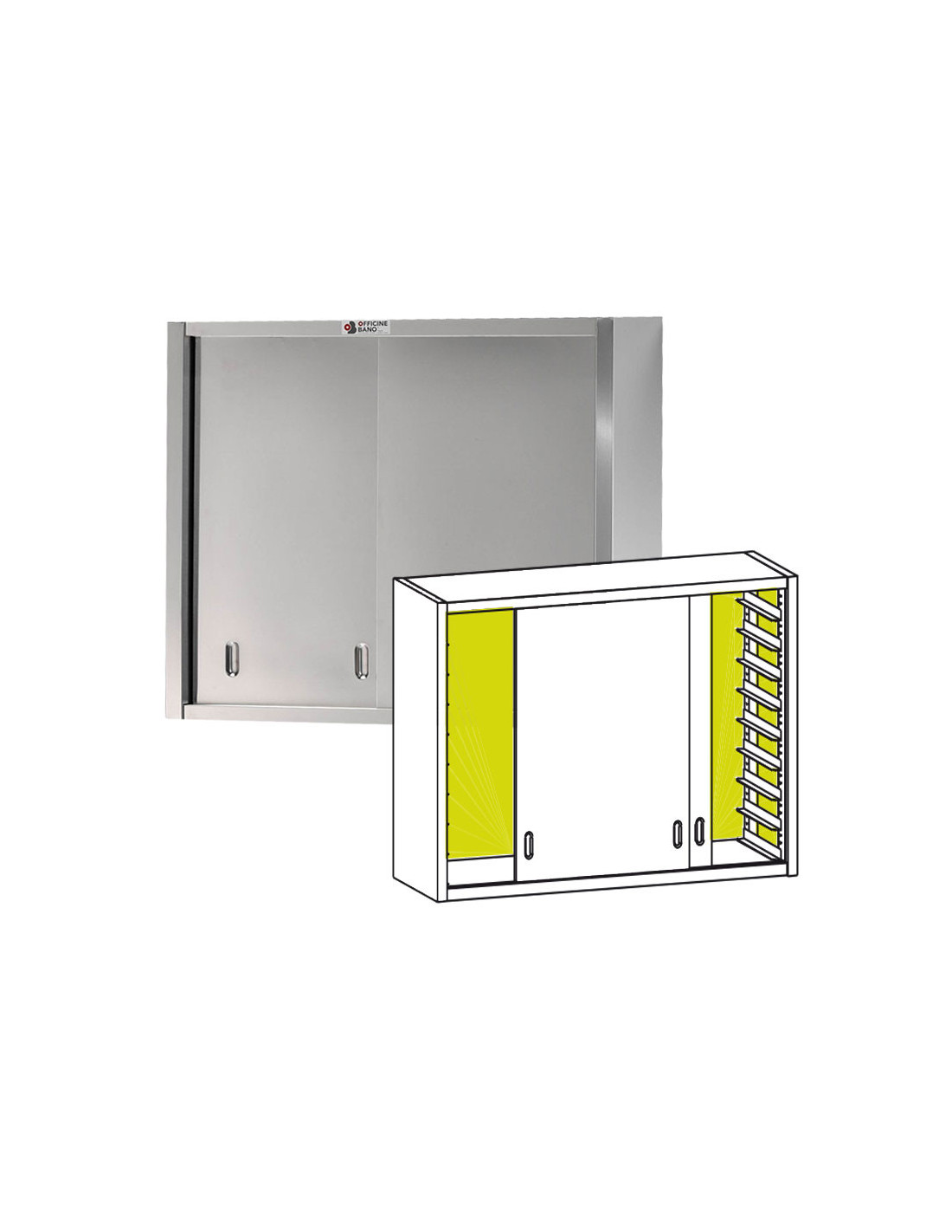 Armario mural de puertas correderas de 40cm de profundidad y 70cm de altura de la línea Bakery & Pastry con estante intermedio.
