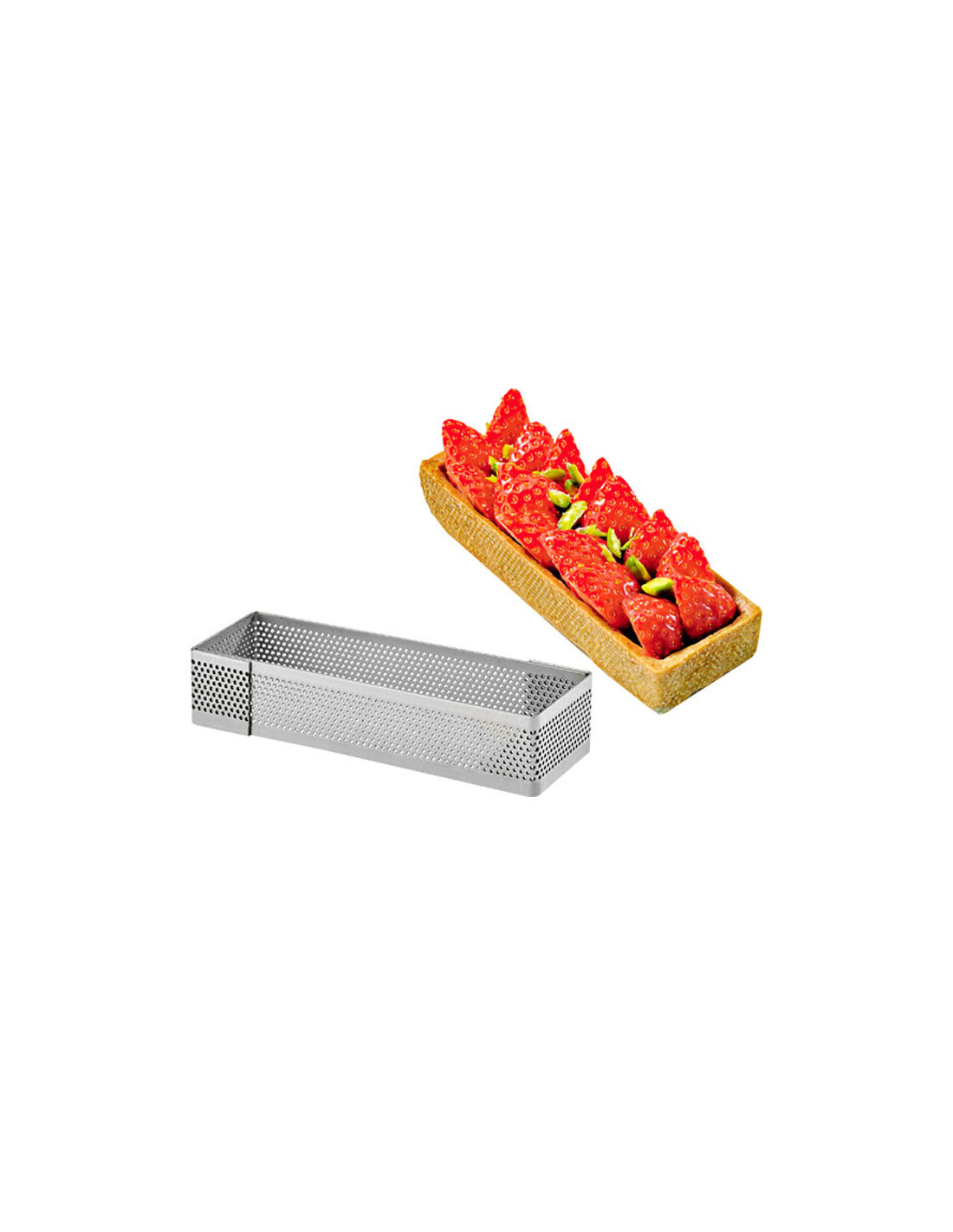 Marco rectangular con cantos rectos de acero inoxidable microperforado para una cocción óptima. Varias medidas disponibles.