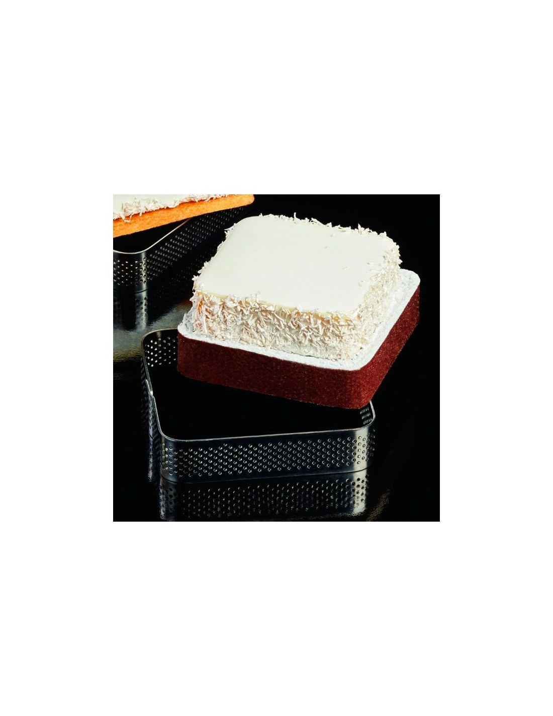 Marco cuadrado con cantos redondeados de acero inoxidable microperforado para una cocción óptima. Altura de 20 mm. Varias medidas disponibles.