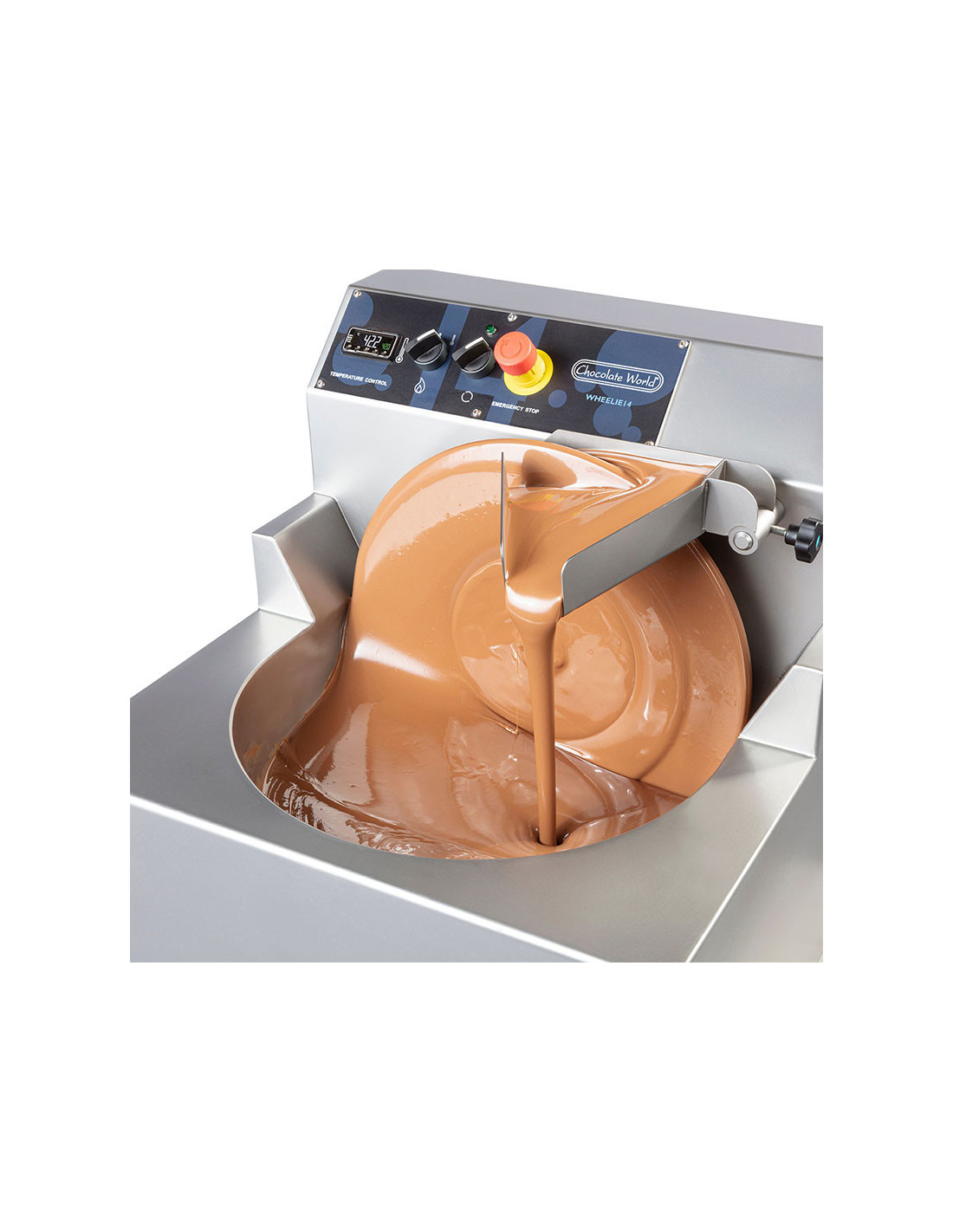 Atemperador electrónico DIVA8 400V, máquina de templado continuo con capacidad de cuba de 8 kg y rendimiento de 50 kg/h.