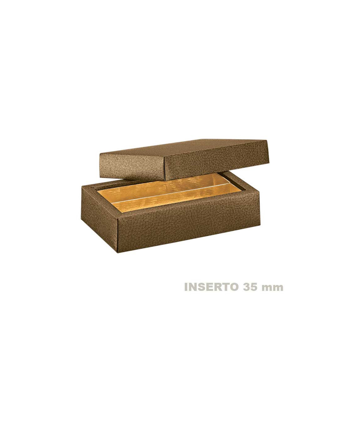 Pack de 10 unidades de estuches de cartón con acabado símil piel marrón con tapa de 145 mm x 75 mm x 35 mm, inserto de 35 mm.