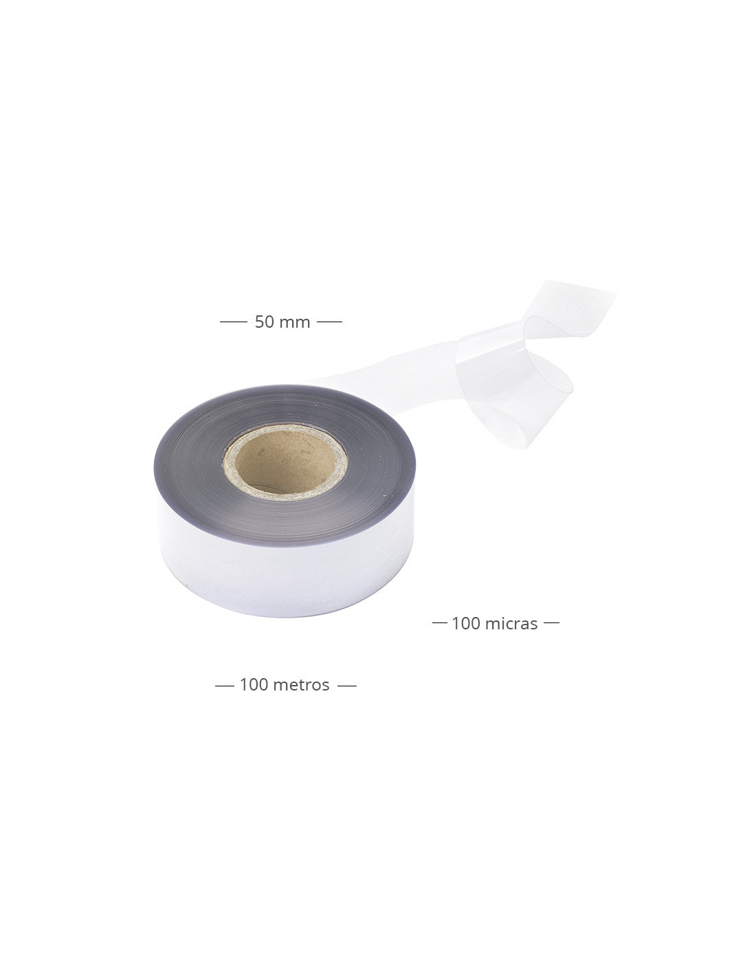 Cinta de PVC incolora. Ancho 50 mm, grosor 100 micras. Rollo de 100 metros.