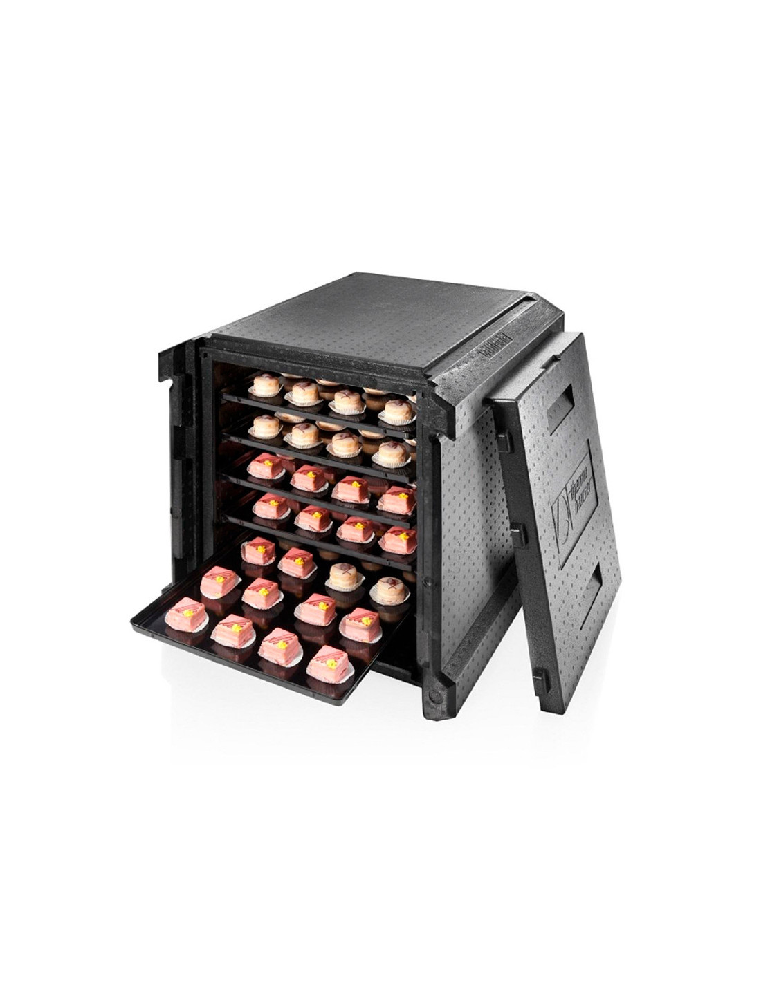 Contenedor isotérmico con diseño clásico de carga frontal de Thermohauser para uso en los sectores de panadería y pastelería. Caja aislada de EPP estándar de carga frontal.