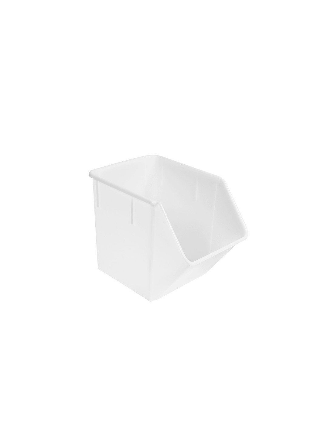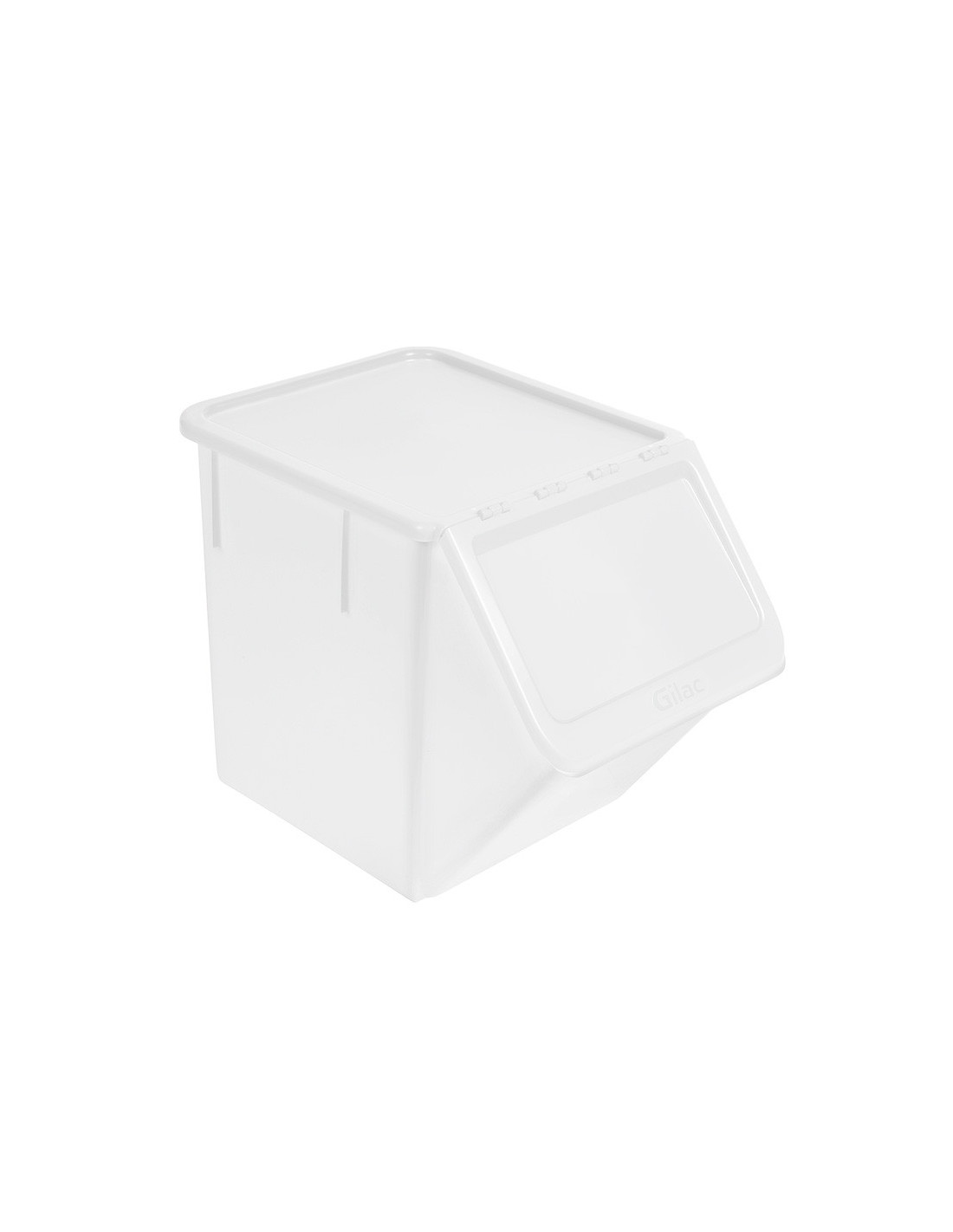 Contenedor de plástico rectangular con tapa y ruedas para ingredientes. Medidas: 75 cm x 40 cm x 71 cm. Capacidad: 120 lt.