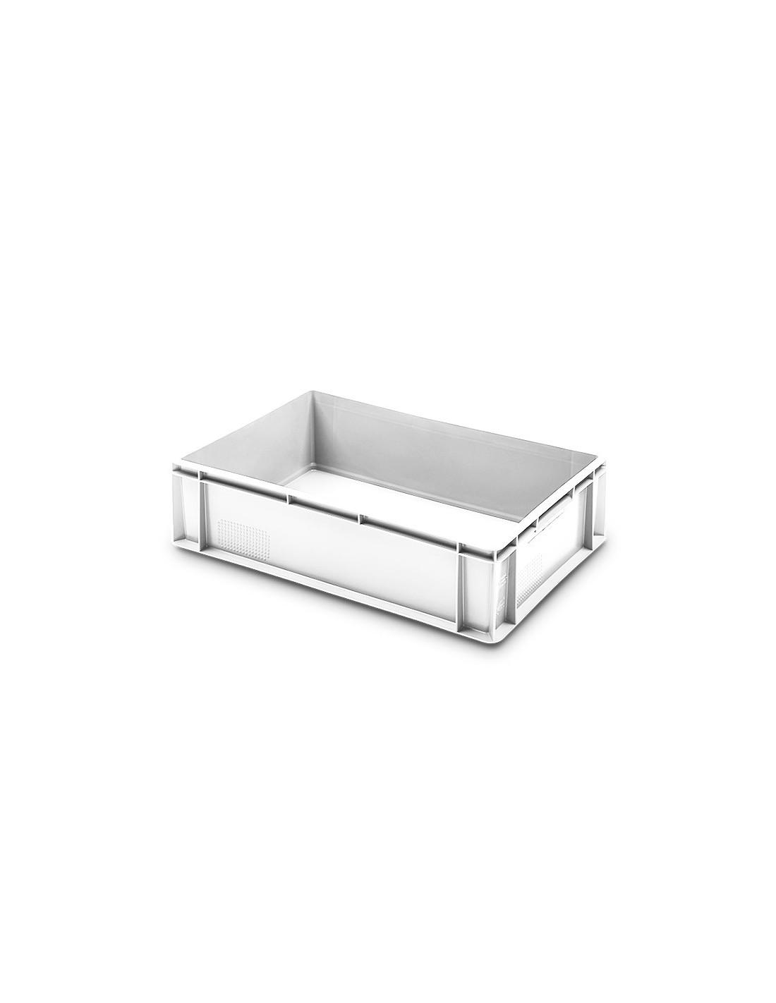 Cubeta blanca ranurada cerrada con capacidad de 20 litros. Medidas: 600 x 400 x 120 mm.