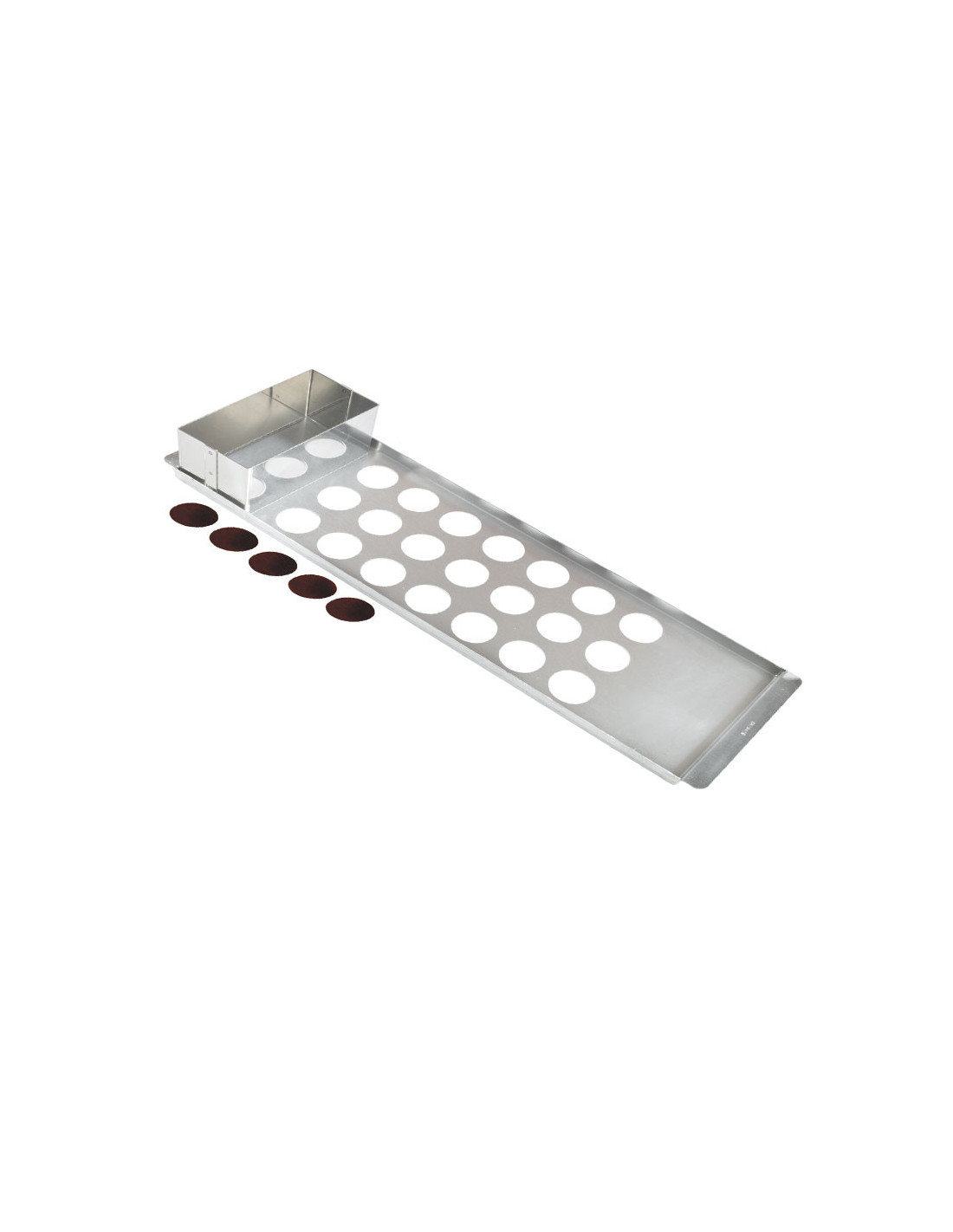 Repartidor inox de discos de chocolate. Para utilizar en una hoja de guitarra o una hoja de transferencia.