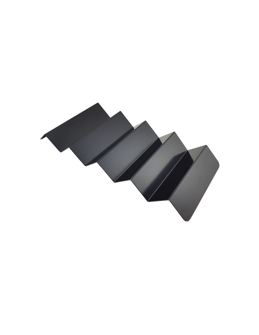 El Expositor Zig Zag negro mate H4/5 es una bandeja de presentación fabricada en aluminio con un elegante acabado negro mate.