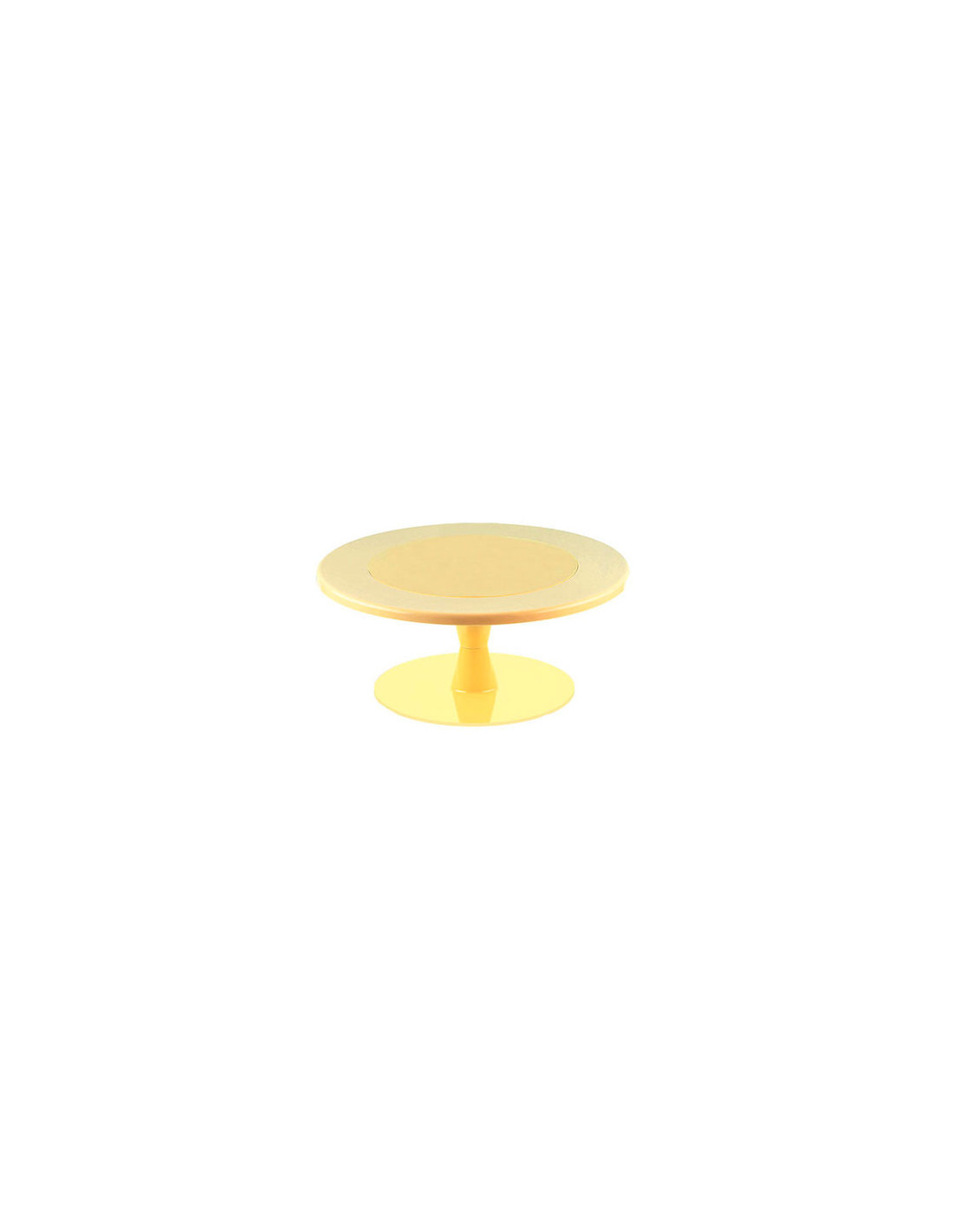 Expositor Hula Up tamaño M en color amarillo. Diámetro 300 mm. Perfecto para presentar pastelería, bollería y pequeños productos de boutique con un toque moderno y llamativo.