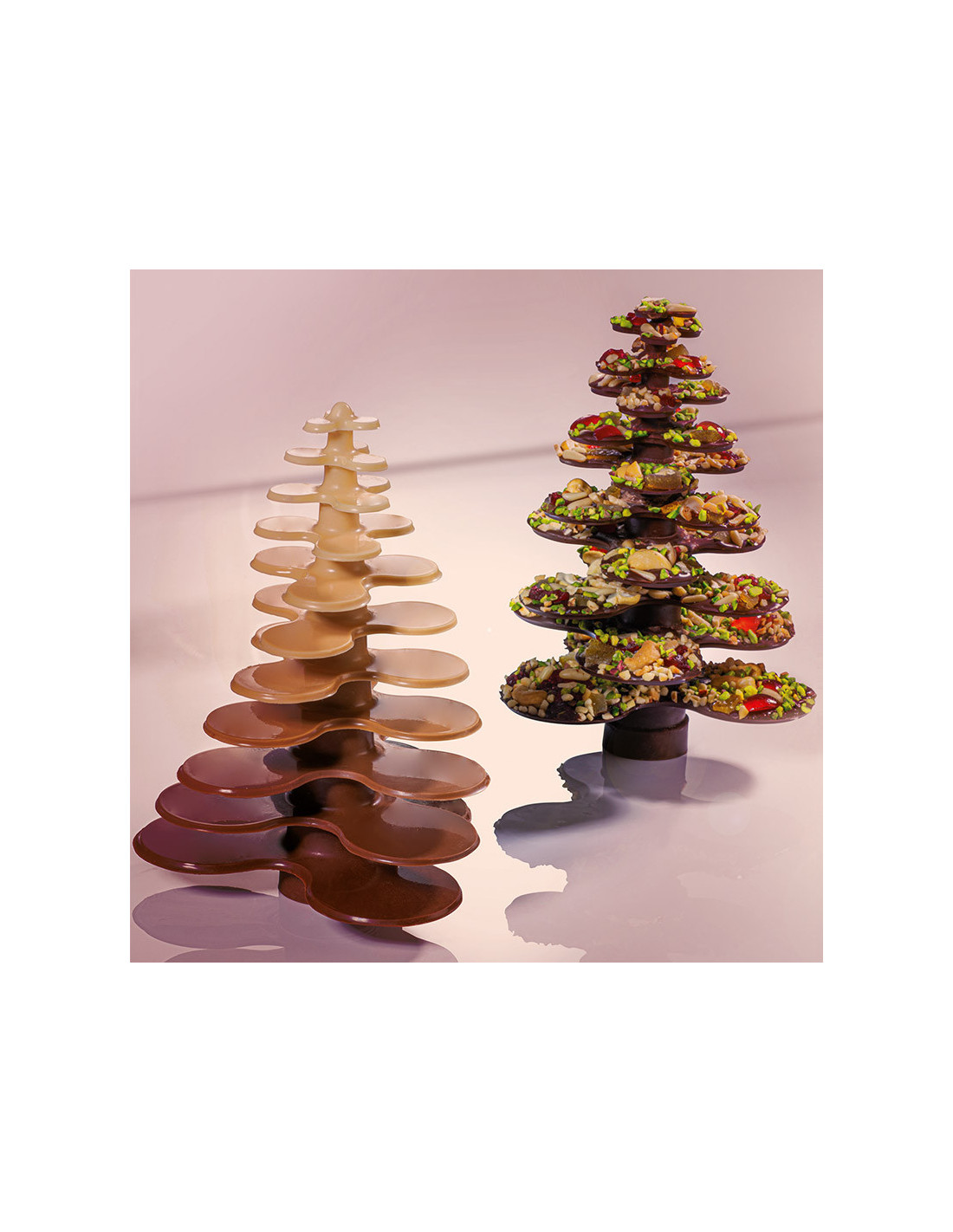 Molde de pvc termoformado para realizar dos árboles de chocolate modulares.
