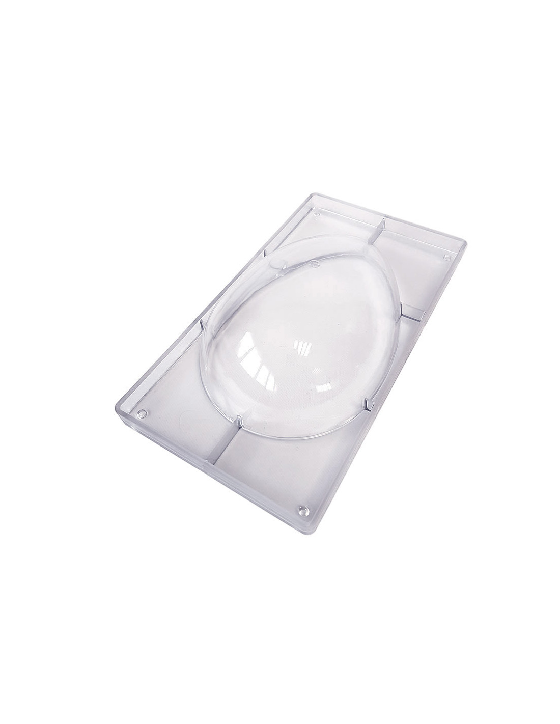 Molde de policarbonato para huevo Liso. Medidas: 258 mm x 175 mm. 1 cavidad. Volumen: 500 g. 1 mitad (1 molde).