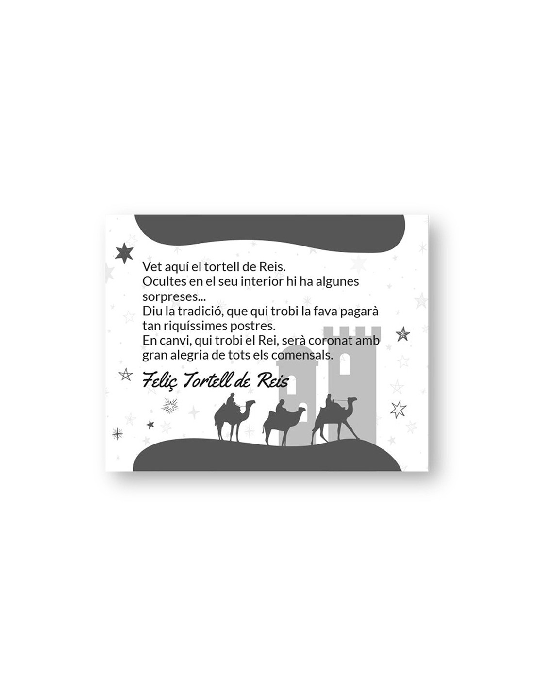 Tarjetas de Reyes en catalán. Pack de 100 unidades. Ideal para complementar el Roscón de Reyes.