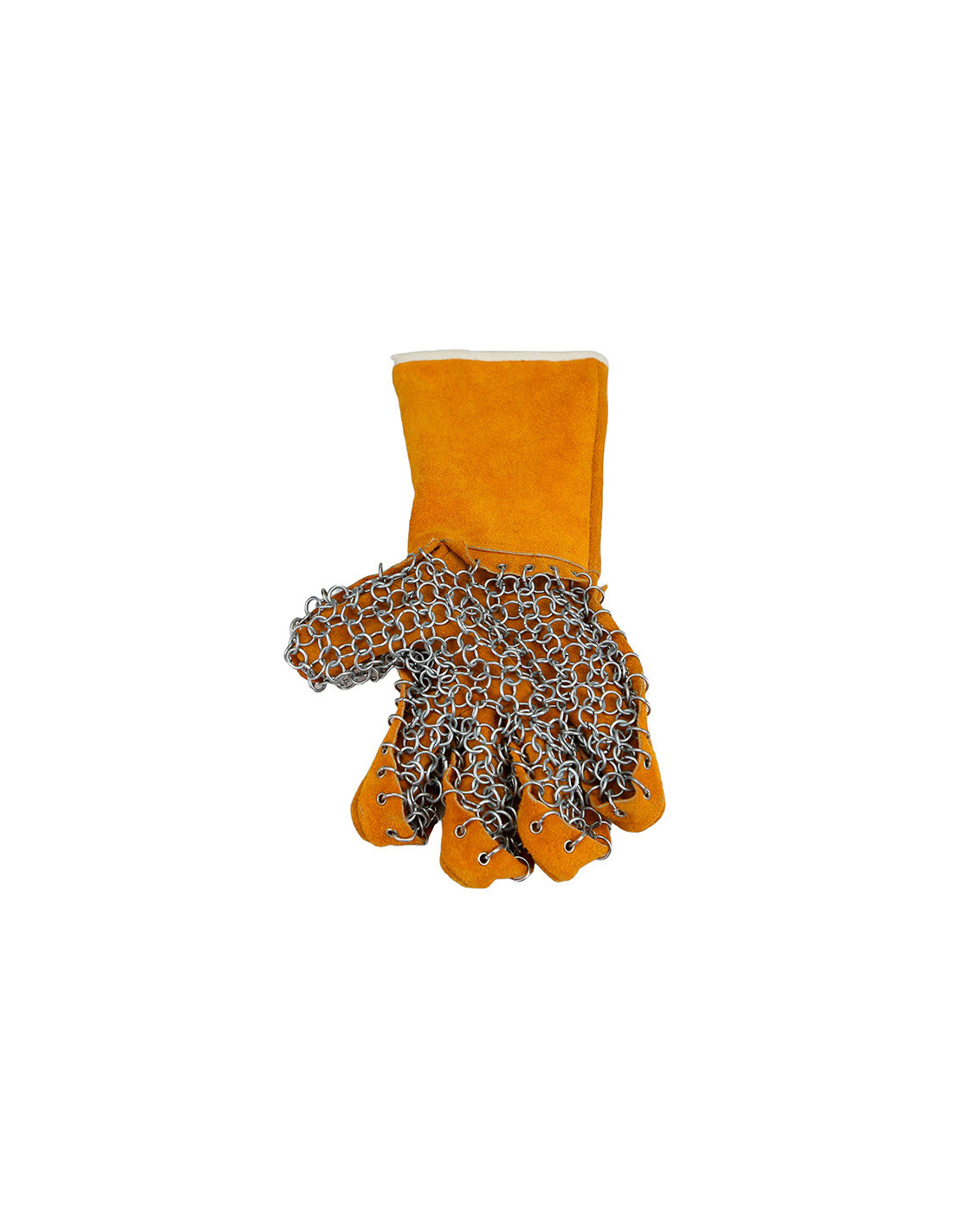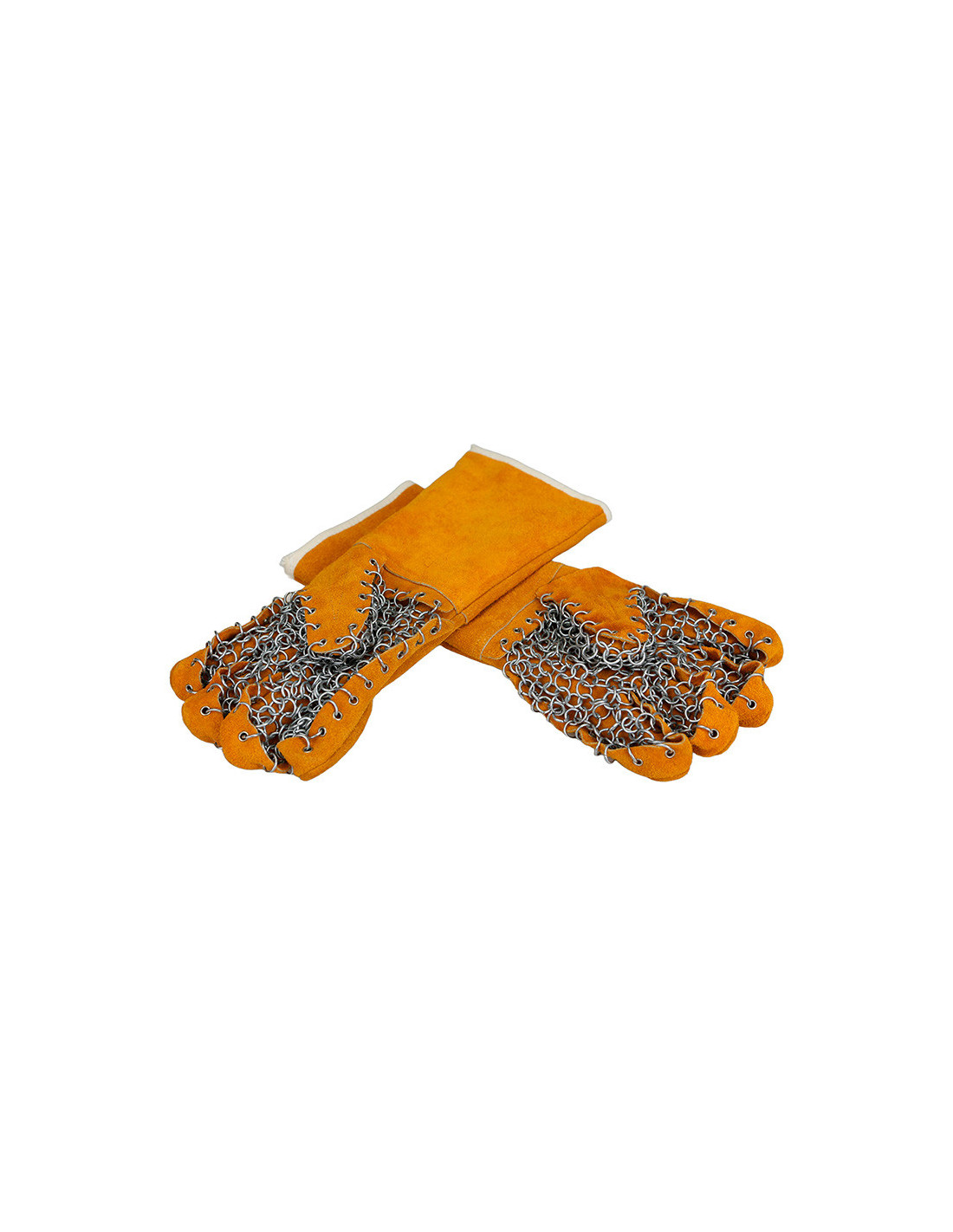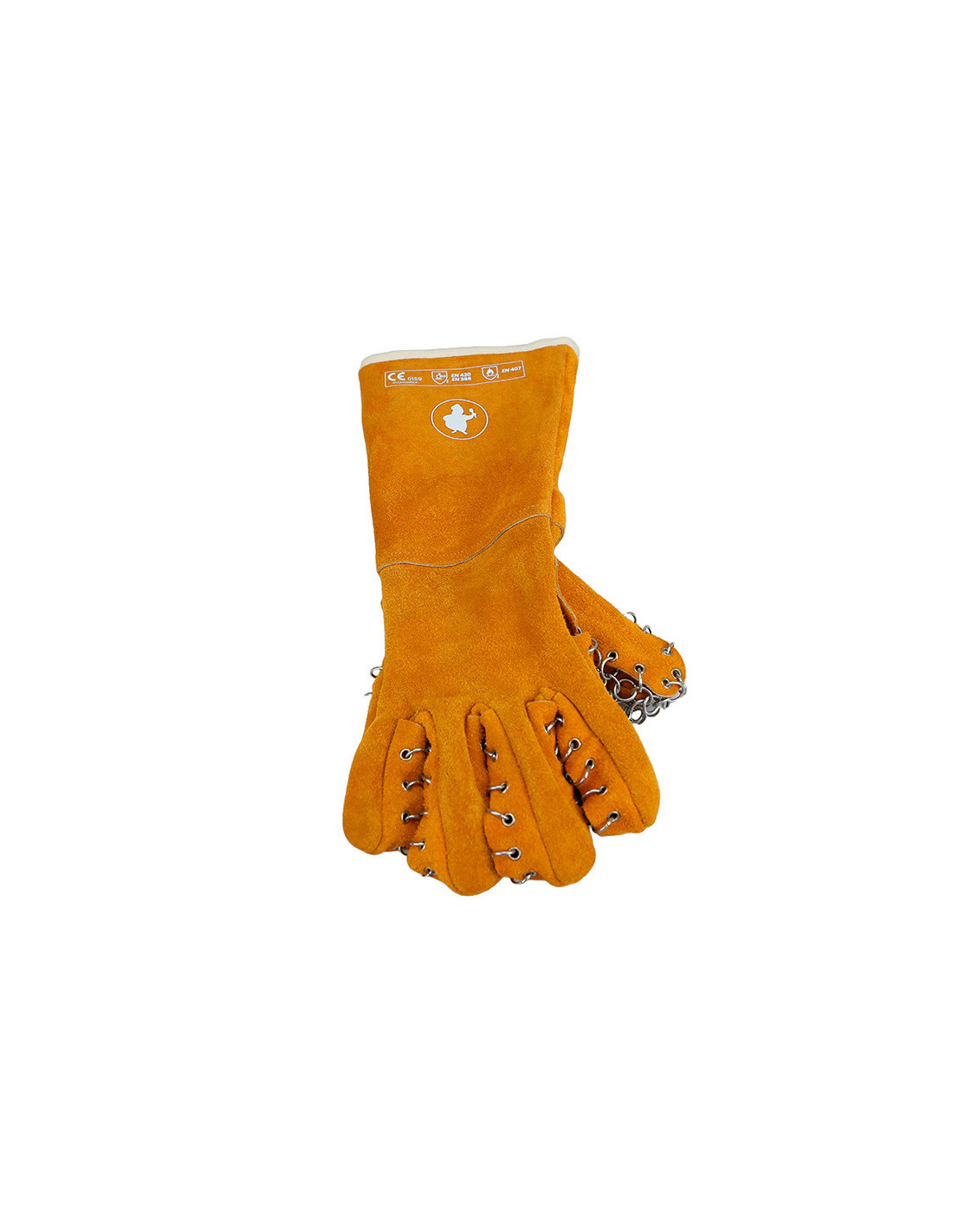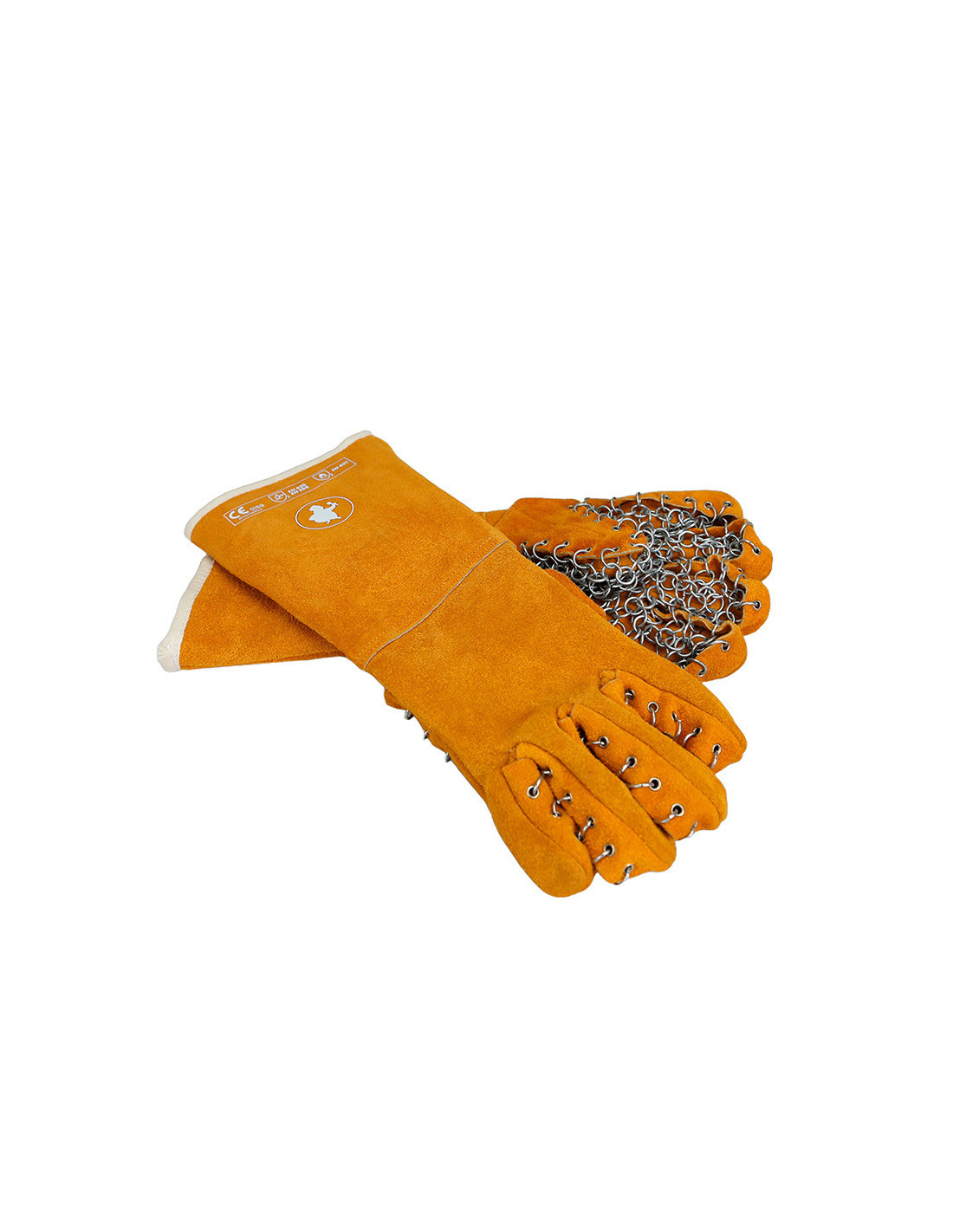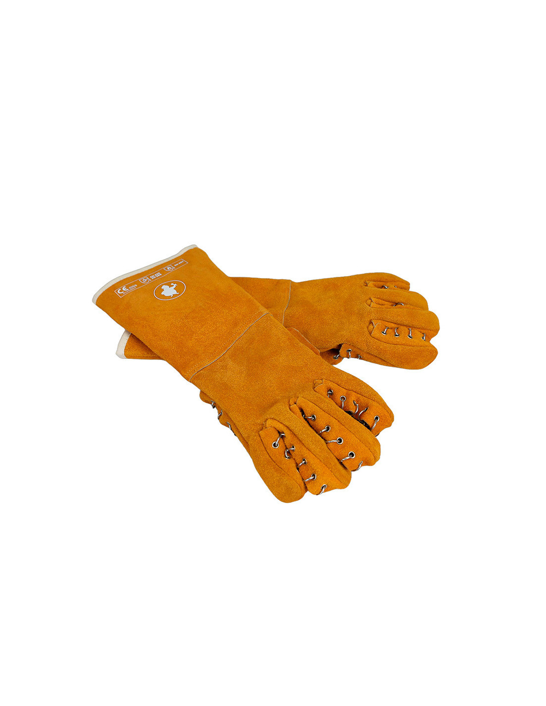 Guante de cuero tratado anticalor largo resistente hasta 500 grados. Manguito de seguridad: 25 cm. Longitud total: 45cm (1 par).