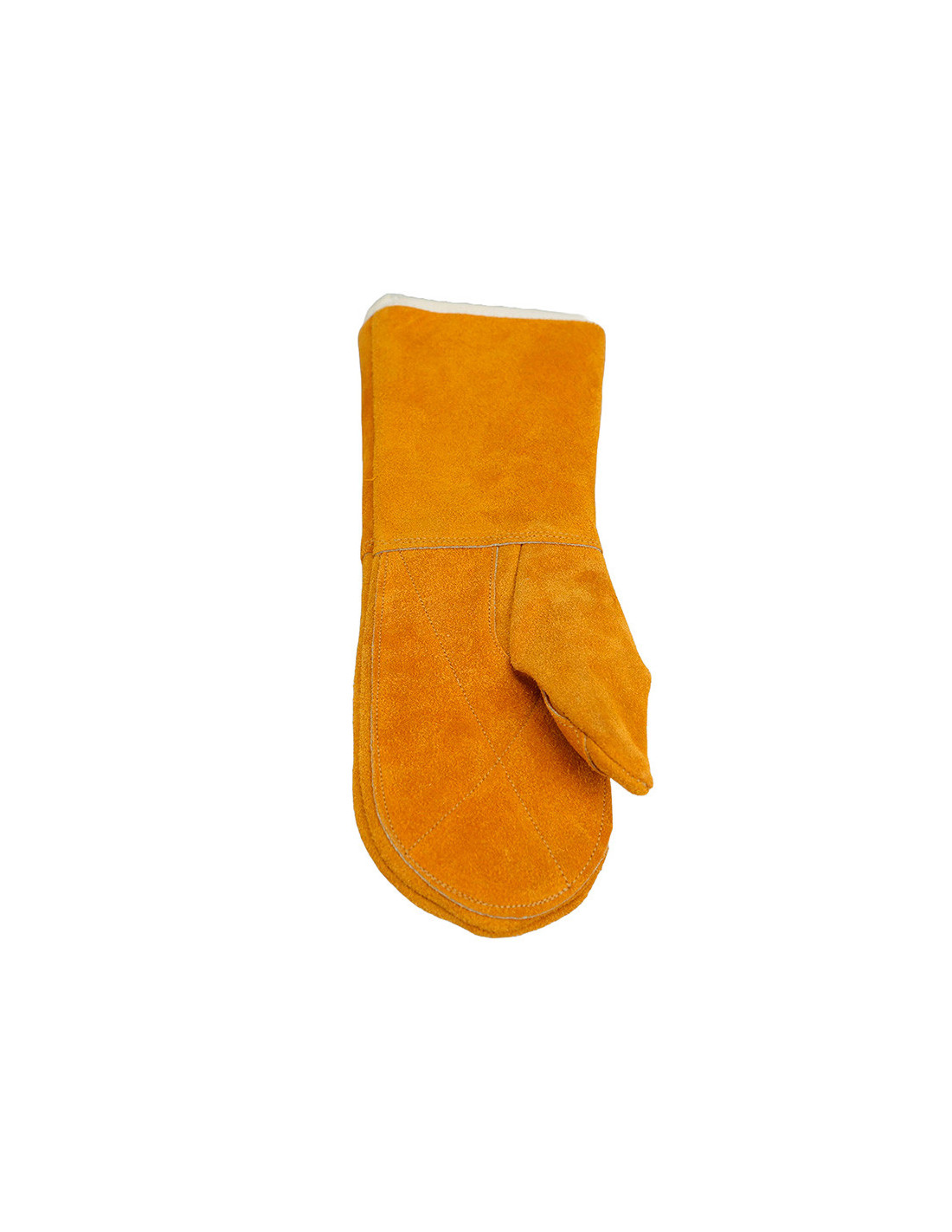 Guantes manopla de cuero tratado anticalor hasta 300ºC, con manguito corto de 10 cm. Incluye guante derecho e izquierdo.