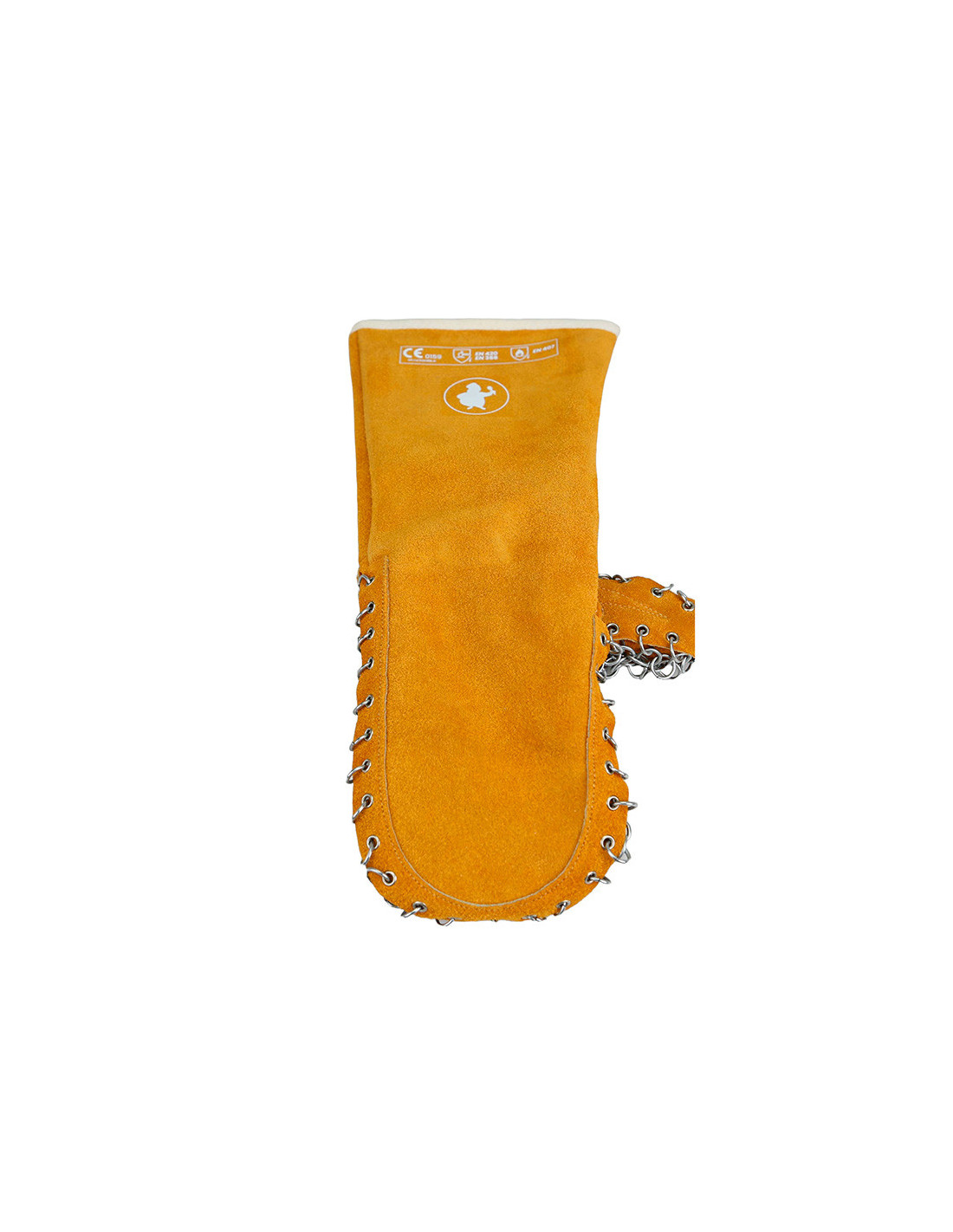 Manopla individual Derecha de malla metálica de 40 cm para alta protección térmica y mecánica. Perfecta para panaderías y entornos industriales.