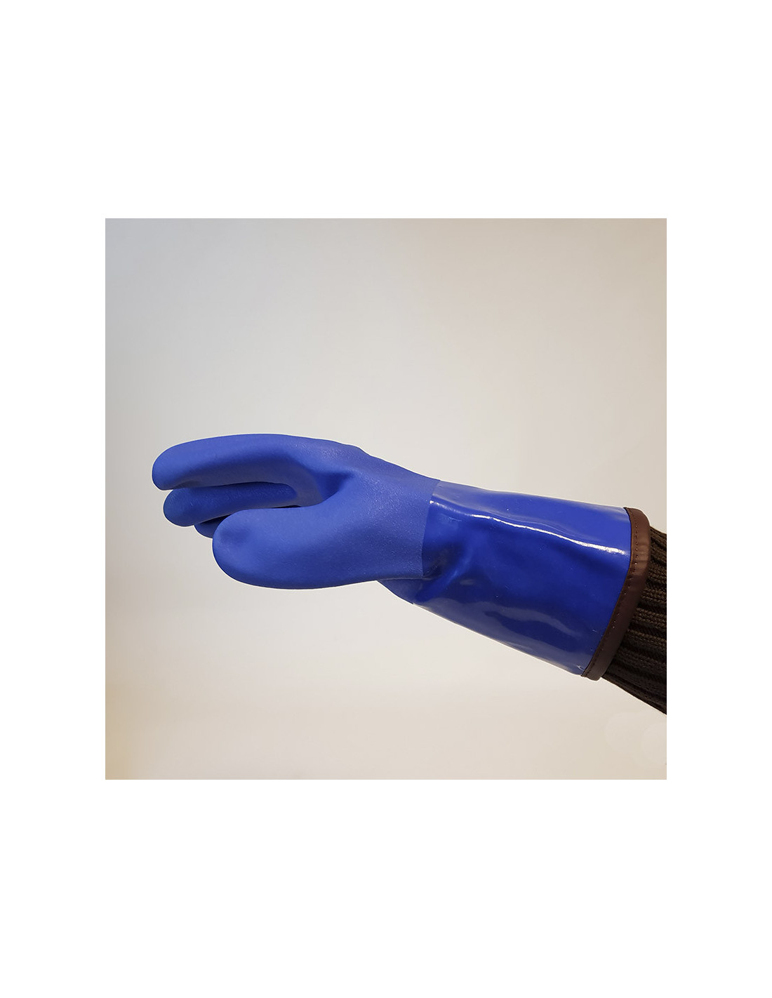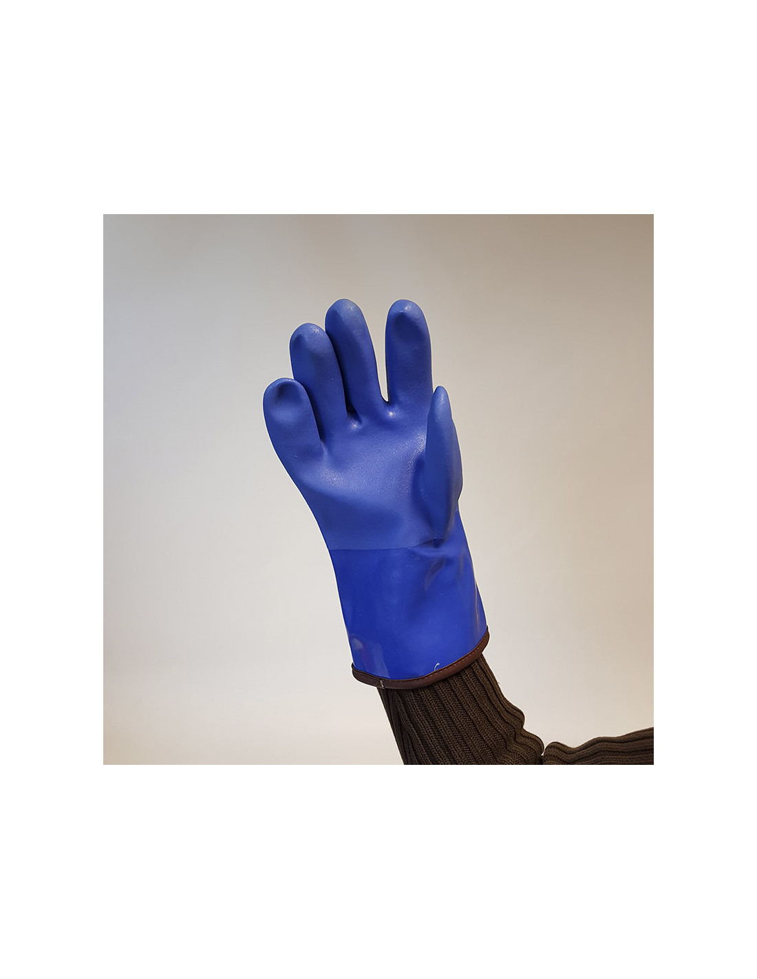 Guante de cuero tratado anticalor largo resistente hasta 500 grados. Manguito de seguridad: 25 cm. Longitud total: 45cm (1 par).