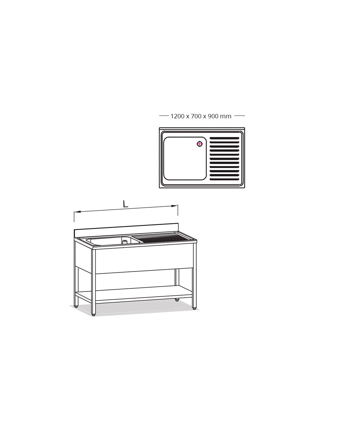 Fregadero de 700mm de acero inoxidable de 2 cubetas con escurridor a la izquierda. Varias medidas disponibles.