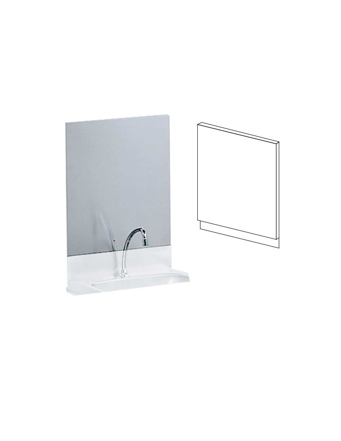 Lavamanos de pared con pulsador de rodilla. Medidas: 500 x 450 x 200 mm.