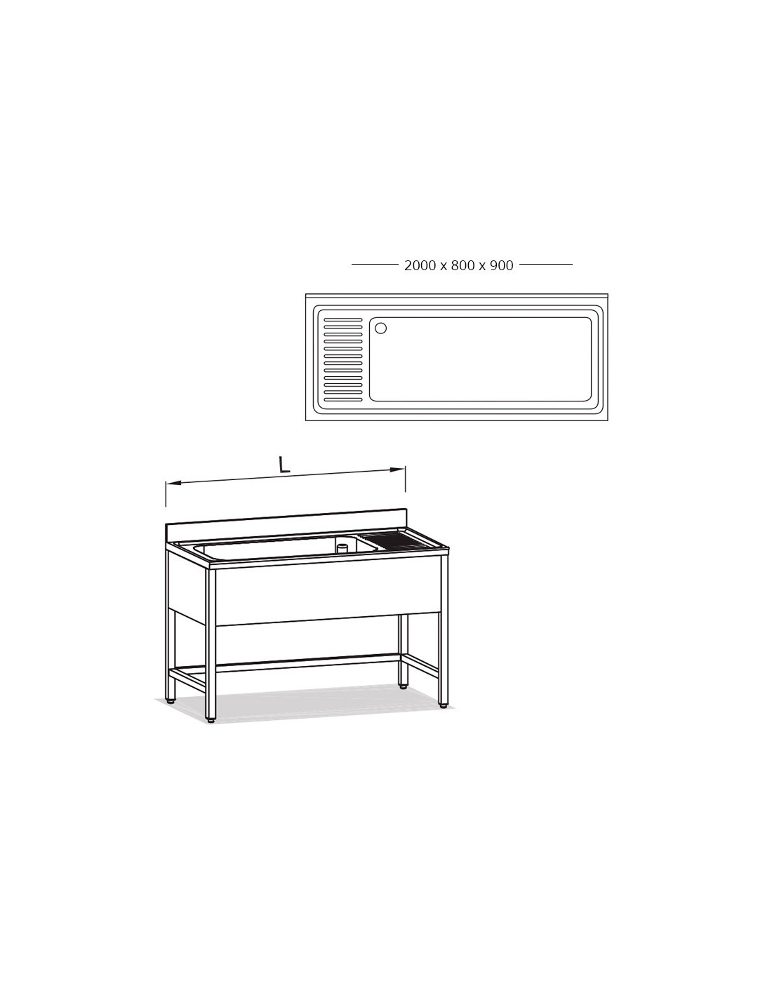 Fregadero de 700mm de acero inoxidable de 2 cubetas con escurridor a la izquierda. Varias medidas disponibles.