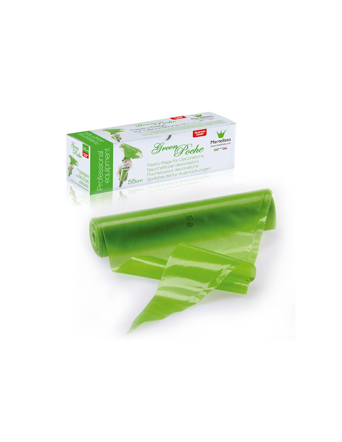 Manga pastelera desechable KGPlus 55 cm, fabricada en polietileno de baja densidad, indicada para uso profesional alimentario. Espesor de 55 micras, co-extrusión, tri-capa.
