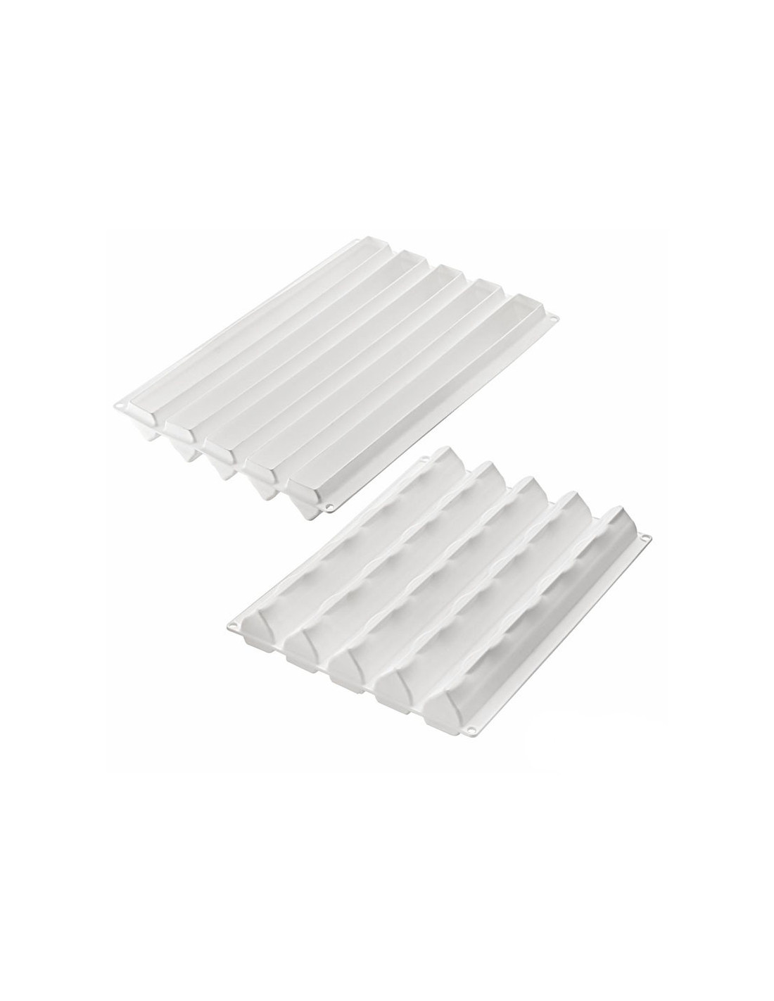 Molde de silicona alimentaria de la Serie Flex, de Silikomart.Su diseño permite producir a la vez cuatro troncos, que se pueden combinar entre si.Se pueden dividir en porciones más pequeñas o individuales.
