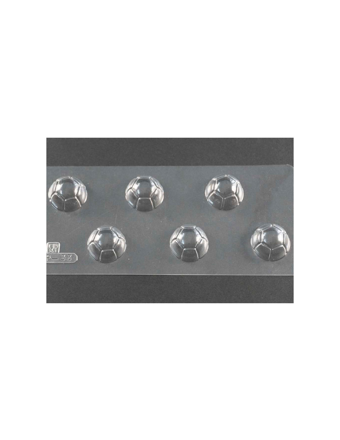 Molde de PVC termoformado ARP045 para realizar la figura Pelota Fútbol. Medidas: D45mm. 4 cavidades. 1 molde.
