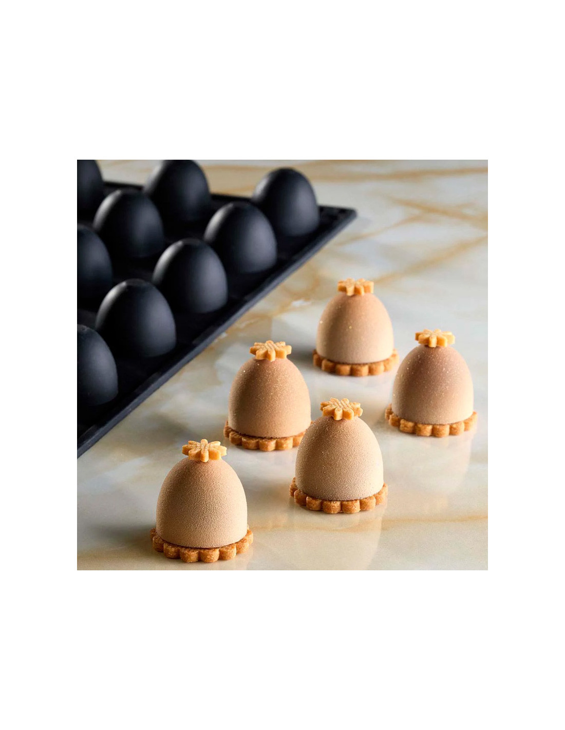 El Pavoflex PX43100 Kupola está diseñado para crear elegantes mini cúpulas con un acabado liso y regular, aportando volumen y armonía a postres contemporáneos. Su forma semiesférica es un clásico atemporal en la alta pastelería.