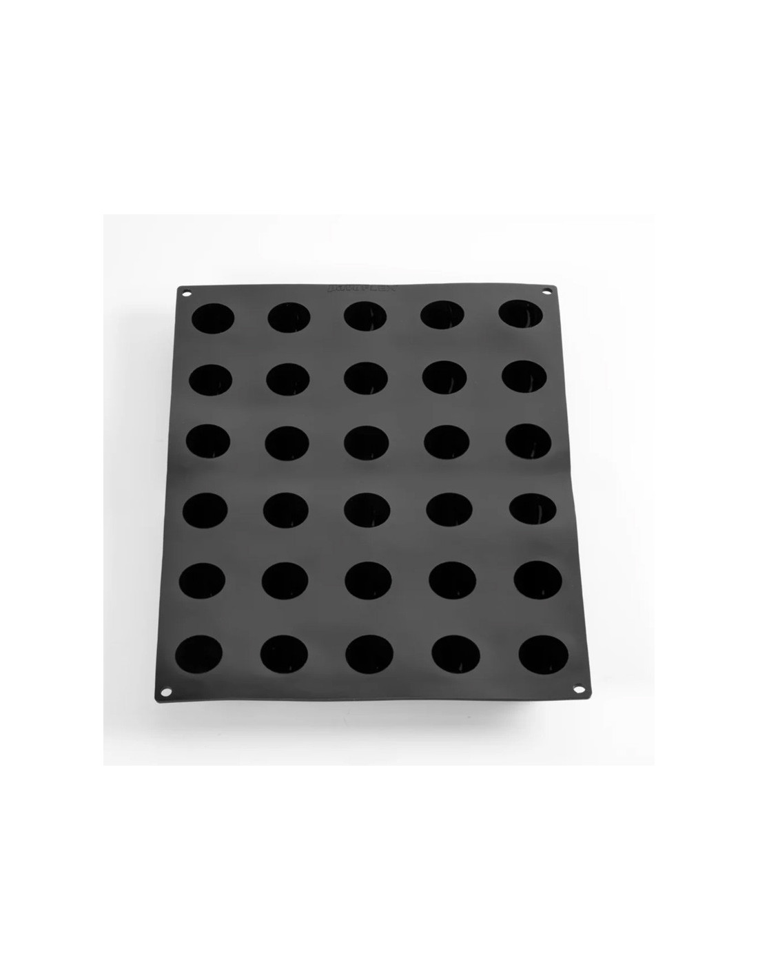Cada molde incorpora 30 cavidades de aproximadamente 20 ml, permitiendo una producción uniforme. Su resistencia térmica lo hace apto tanto para horno como para abatidor y congelador.