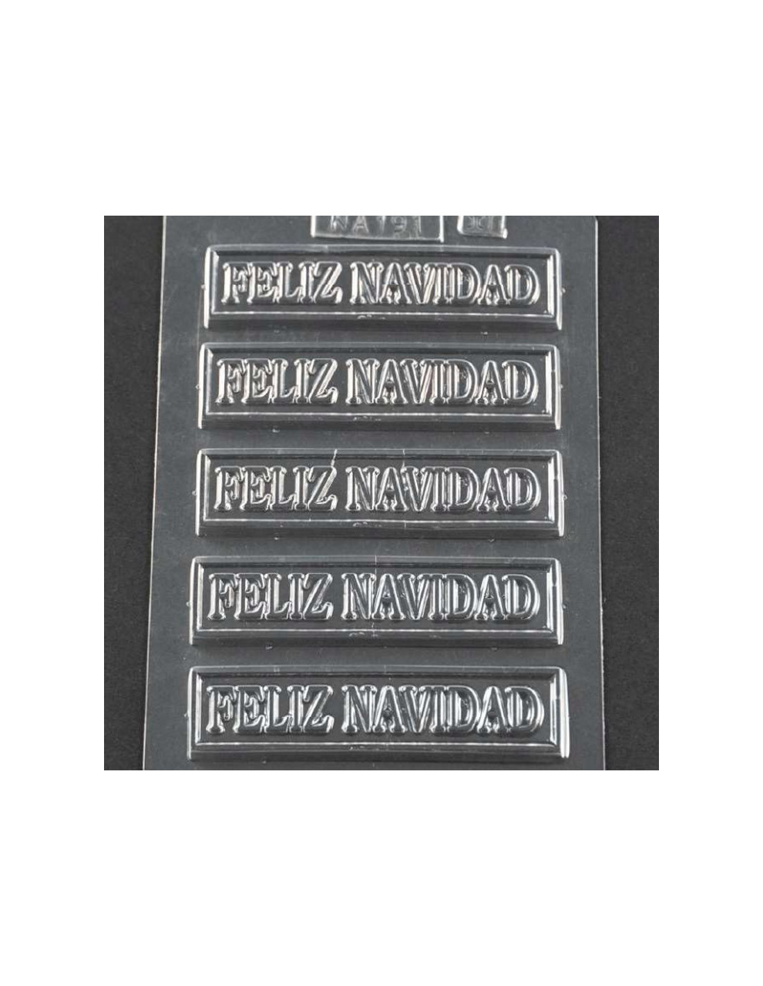 Molde de pvc para pastillaje en chocolate \"Feliç Aniversari\". Medidas: 105 x 24 x 4 mm. 8 cavidades.