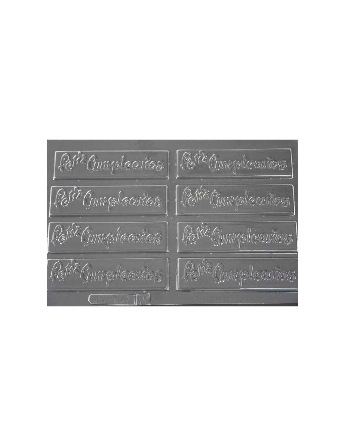 Molde de PVC para placas de chocolate Feliç Any Nou. 5 cavidades de 90 x 20 mm. 1 molde.
