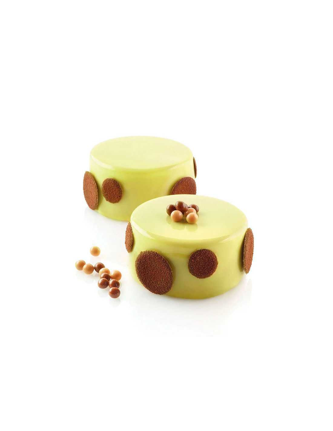 Molde fabricado con silicona alimentaria 100%. 6 cavidades de D70 x 35 mm. Volumen cavidad: 80 ml.
