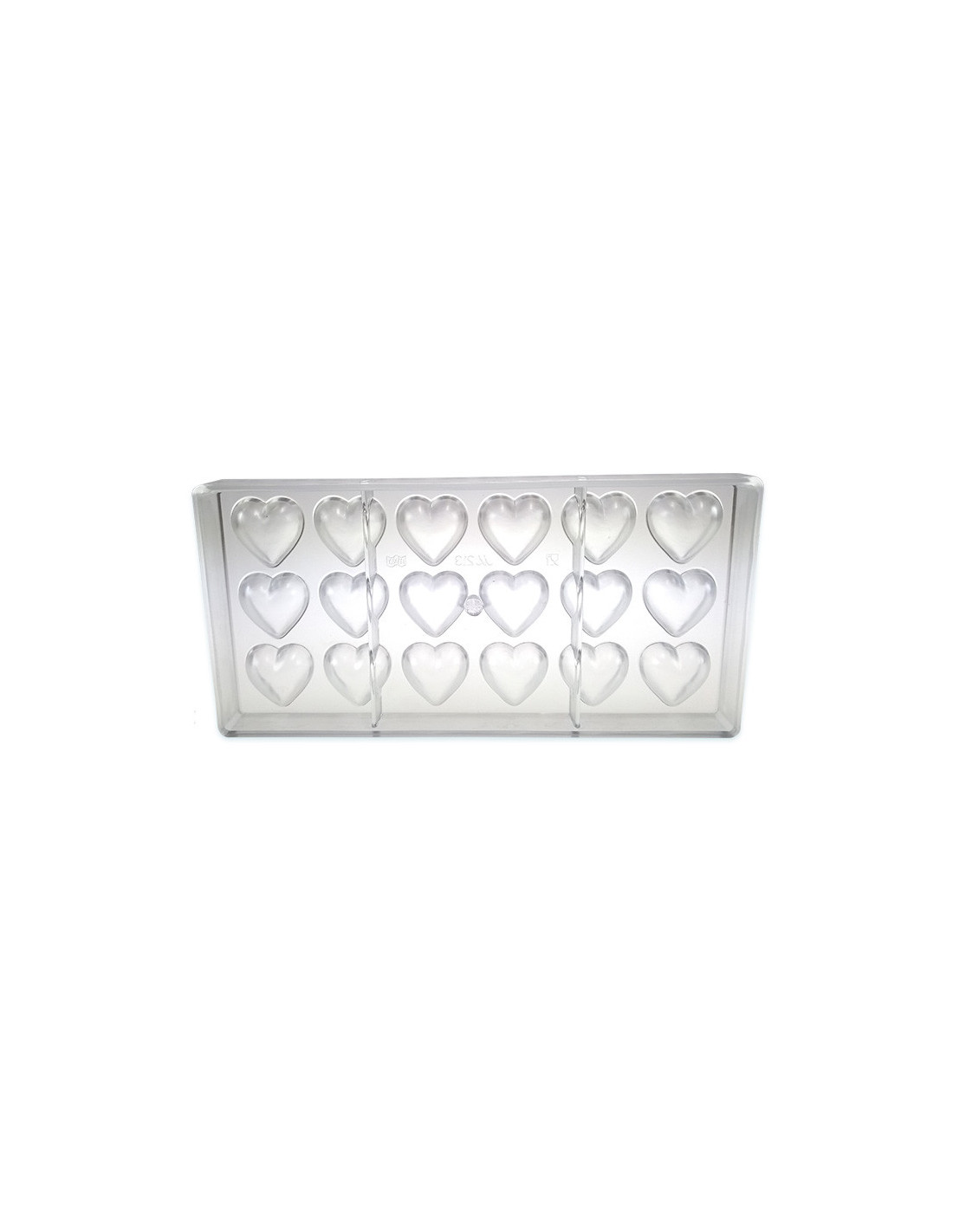 Molde de PVC con 18 cavidades en forma de corazón (32x32x14,5 mm), ideal para bombones.