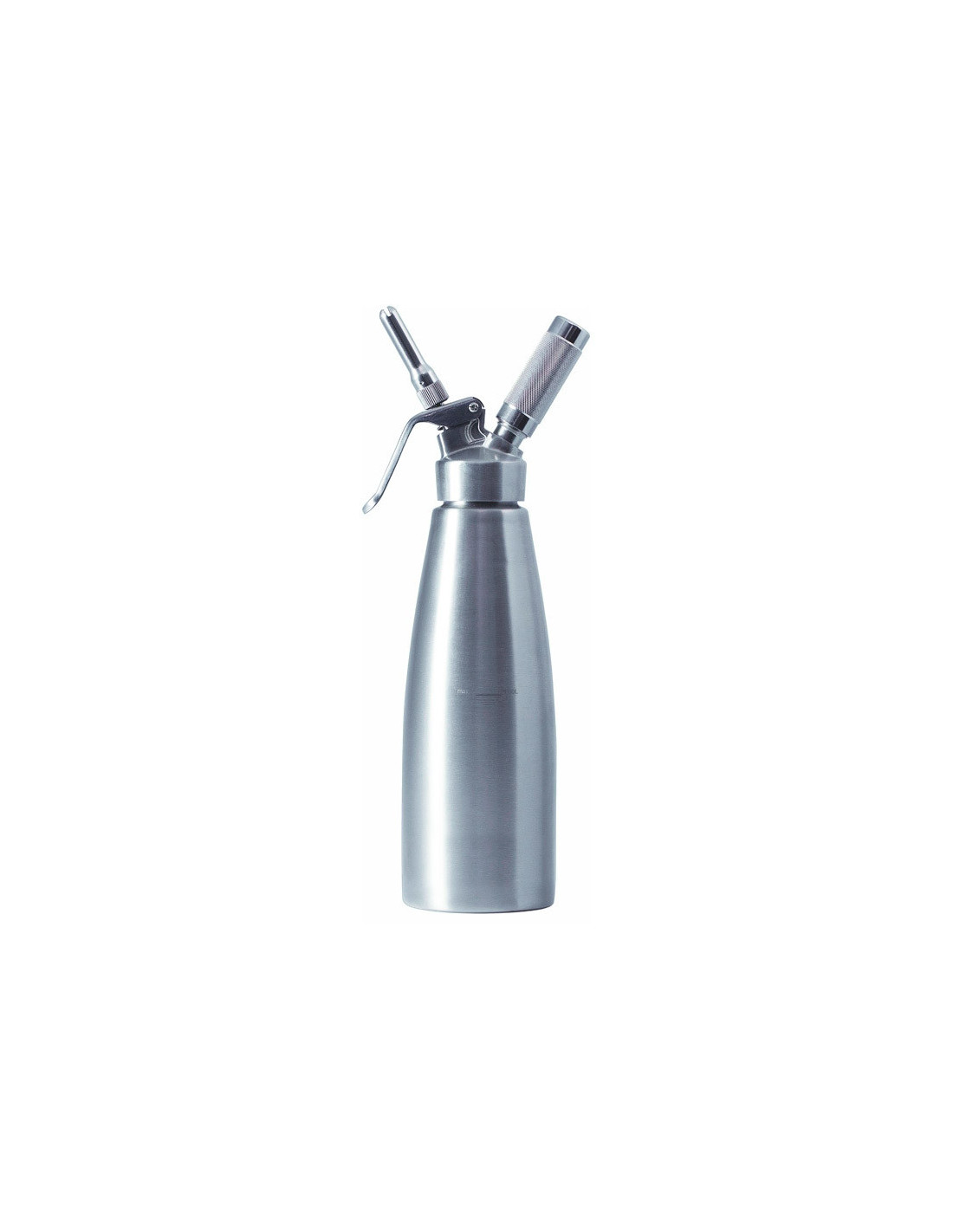 Sifón de nata de aluminio con 500 ml de capacidad. Uso profesional.