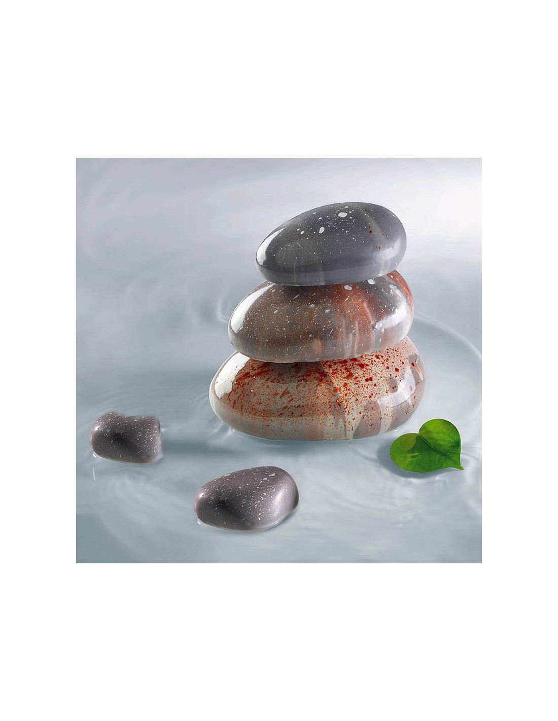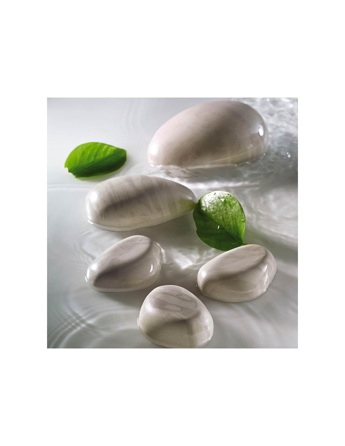 Molde de silicona Mul 3D Pebble 120, de Silikomart Professional. Medidas: D80 x h 35. Volumen: 120 ml. 5 cavidades. Incluye soporte plástico.