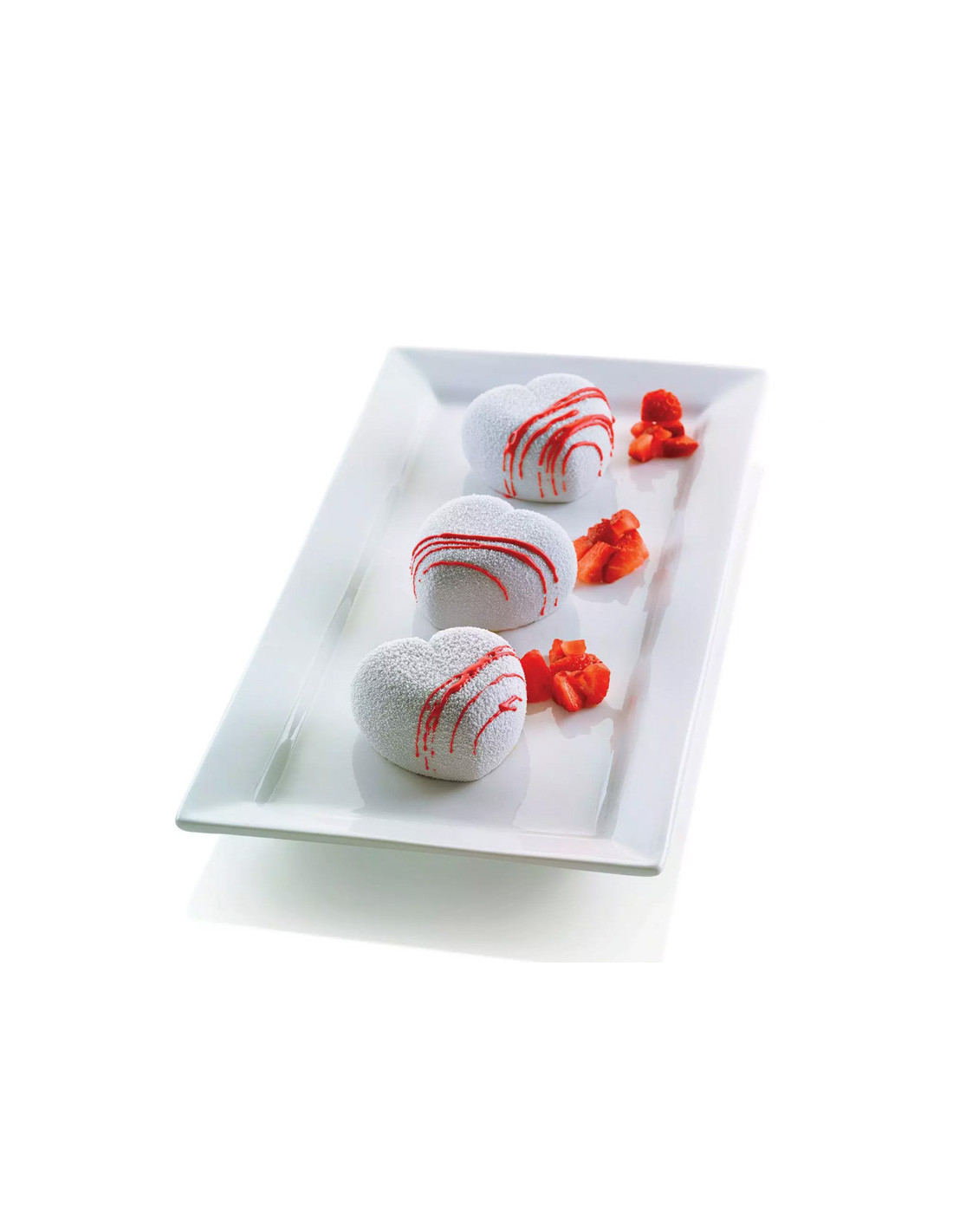 El Molde CUORICINO está diseñado para elaboraciones con temática romántica, perfecto para pequeños postres, semifríos, mousses o preparaciones horneadas con forma de corazón. Cada cavidad incorpora una bordadura interna innovadora, que proporciona un acabado ligeramente redondeado en la base, logrando piezas visualmente más elegantes y fáciles de desmoldar.