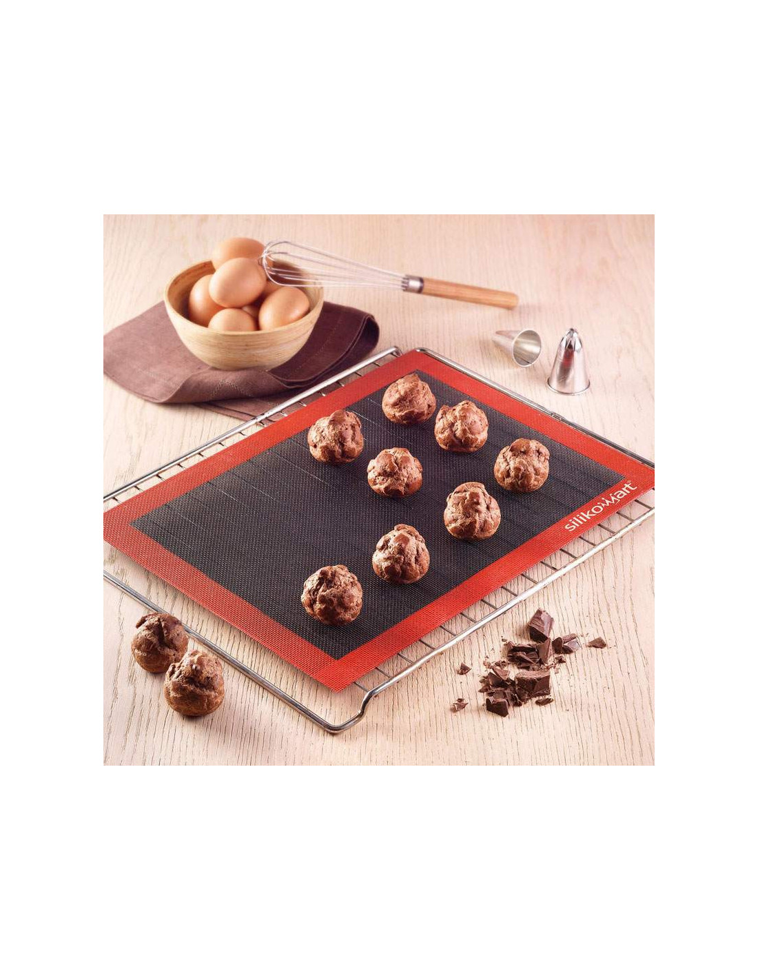 Tapete de silicona microperforada de la Serie Air Mat, de Silikomart.Permite su uso como soporte de congelación al ser antideslizante y antiadherentes.