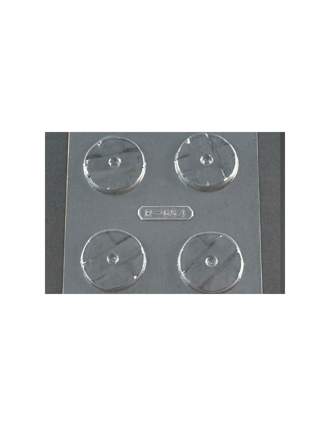Molde de PVC ARR669 para figura de chocolate Rueda Radios. Medidas: D70 x 8 mm. Producción: 1 figura.