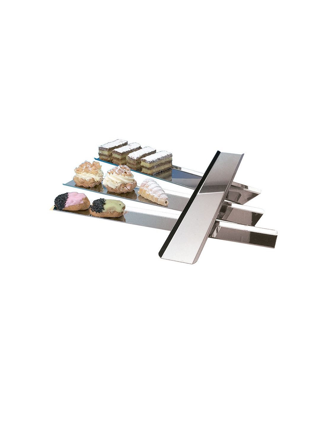 Bandeja de acero inoxidable con 2 lados, cónica. Medidas: 600 x 130 x 15 mm.