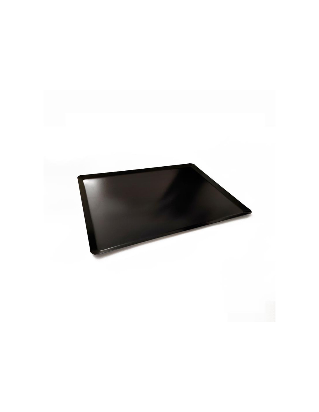 Bandeja Cónica Anonizada de aluminio negro mate. Medidas: 300 x 400 x 10 cm. Espesor: 1,2 mm. Ideal para presentación de productos de pastelería y repostería.