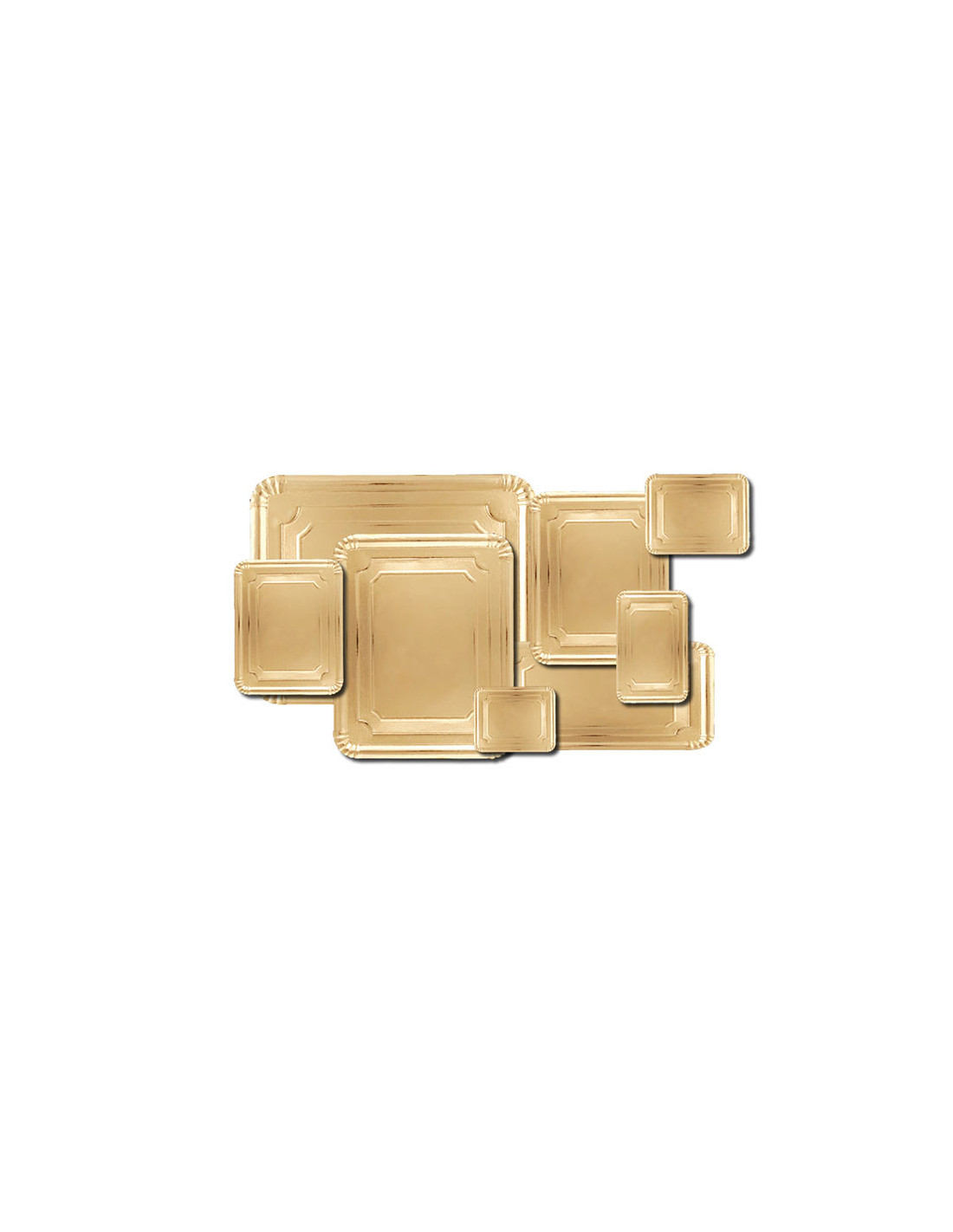 Bandeja rectangular Nº 13 de cartón con acabado metalizado oro. Medidas 34 x 42 cm. Pack de 50 unidades