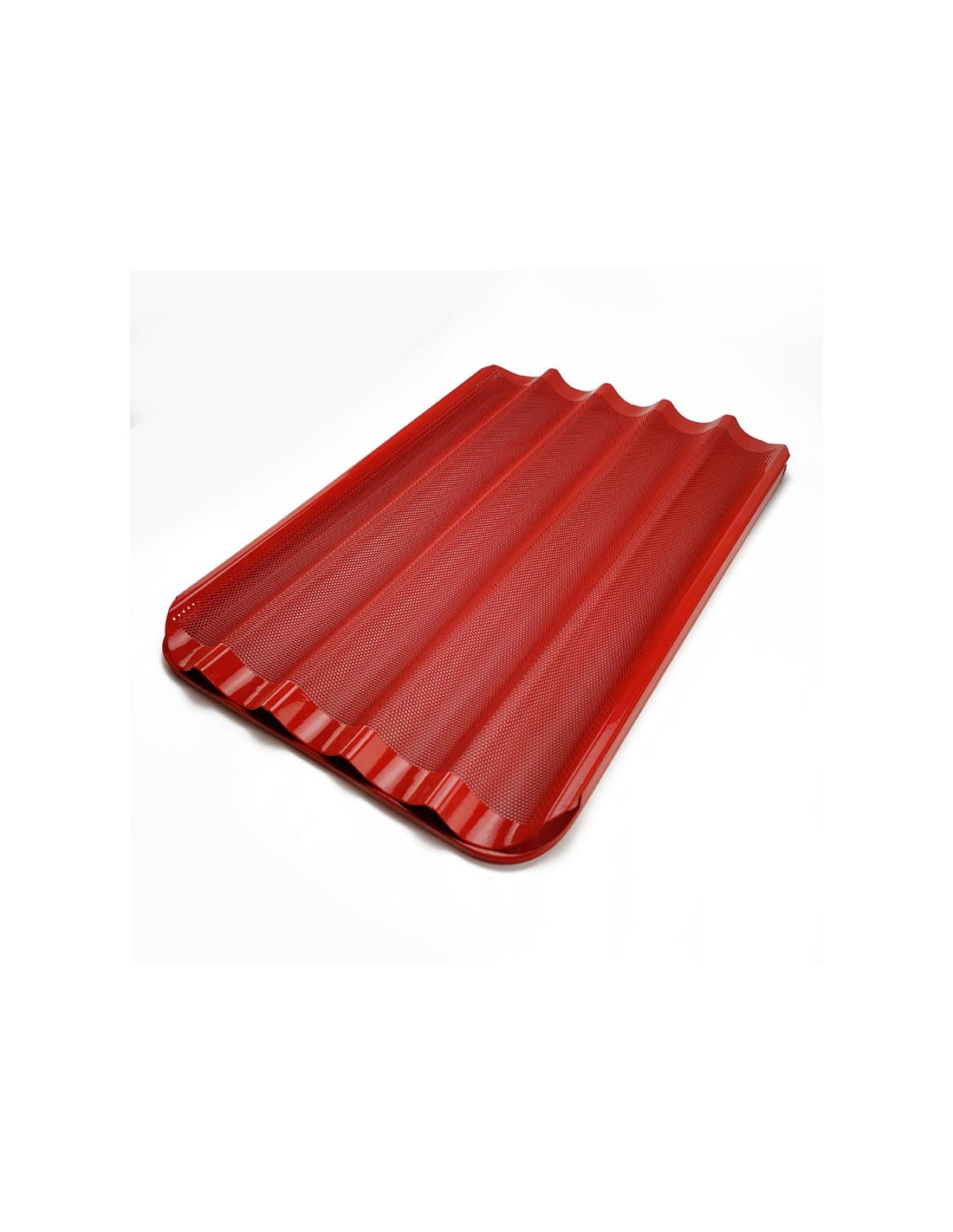 Bandeja de aluminio perforada con 5 canales transversales. Acabado con caucho de silicona. Medidas: 400 x 600 mm.