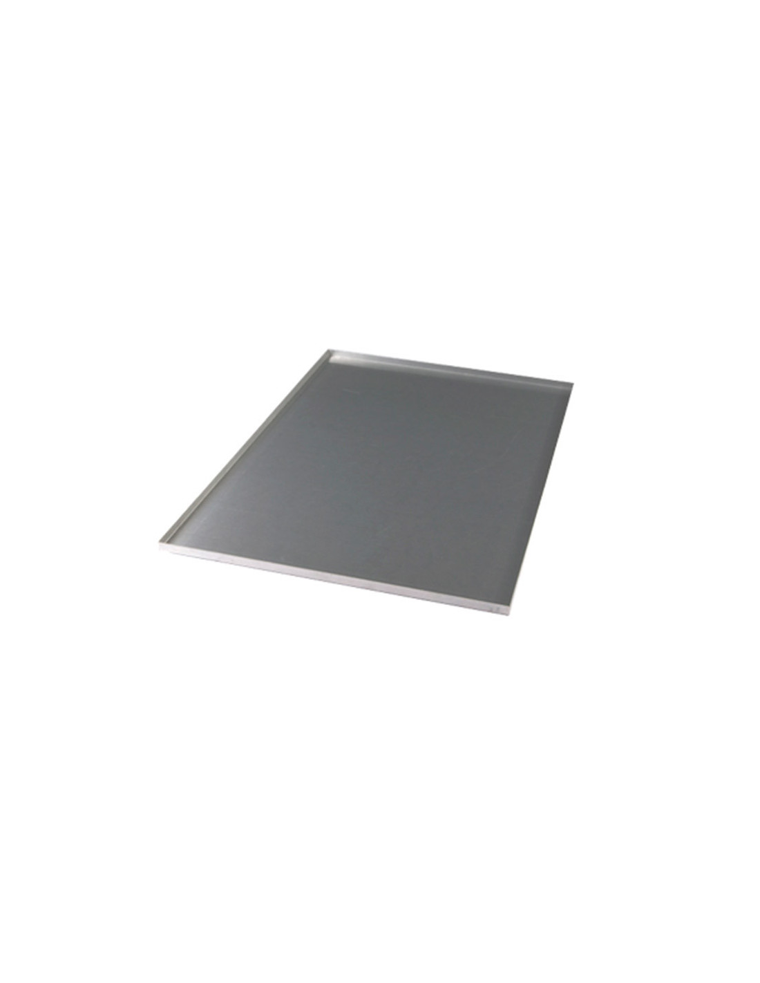 Bandeja de aluminio 600x400x10 mm, 4 lados plegados, espesor 1,2 mm. Ideal para panadería y pastelería profesional.