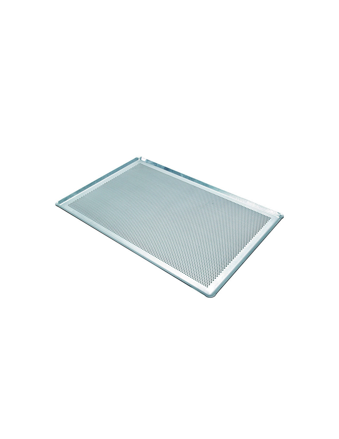 Bandeja de aluminio perforada cónica con orificios de 3 mm. Medidas: 530 x 325 x 20 mm.