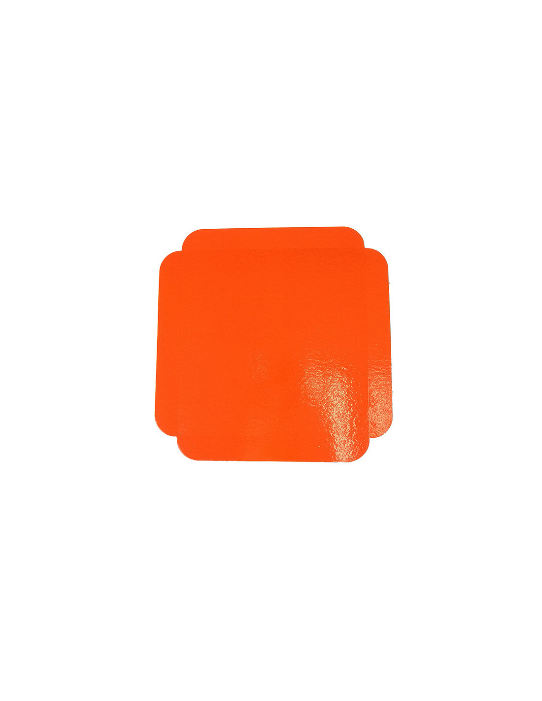 Cartón cuadrado naranja/negro para presentación de pastelería. Medidas: 17 × 17 + 2 cm. Pack de 50 unidades.