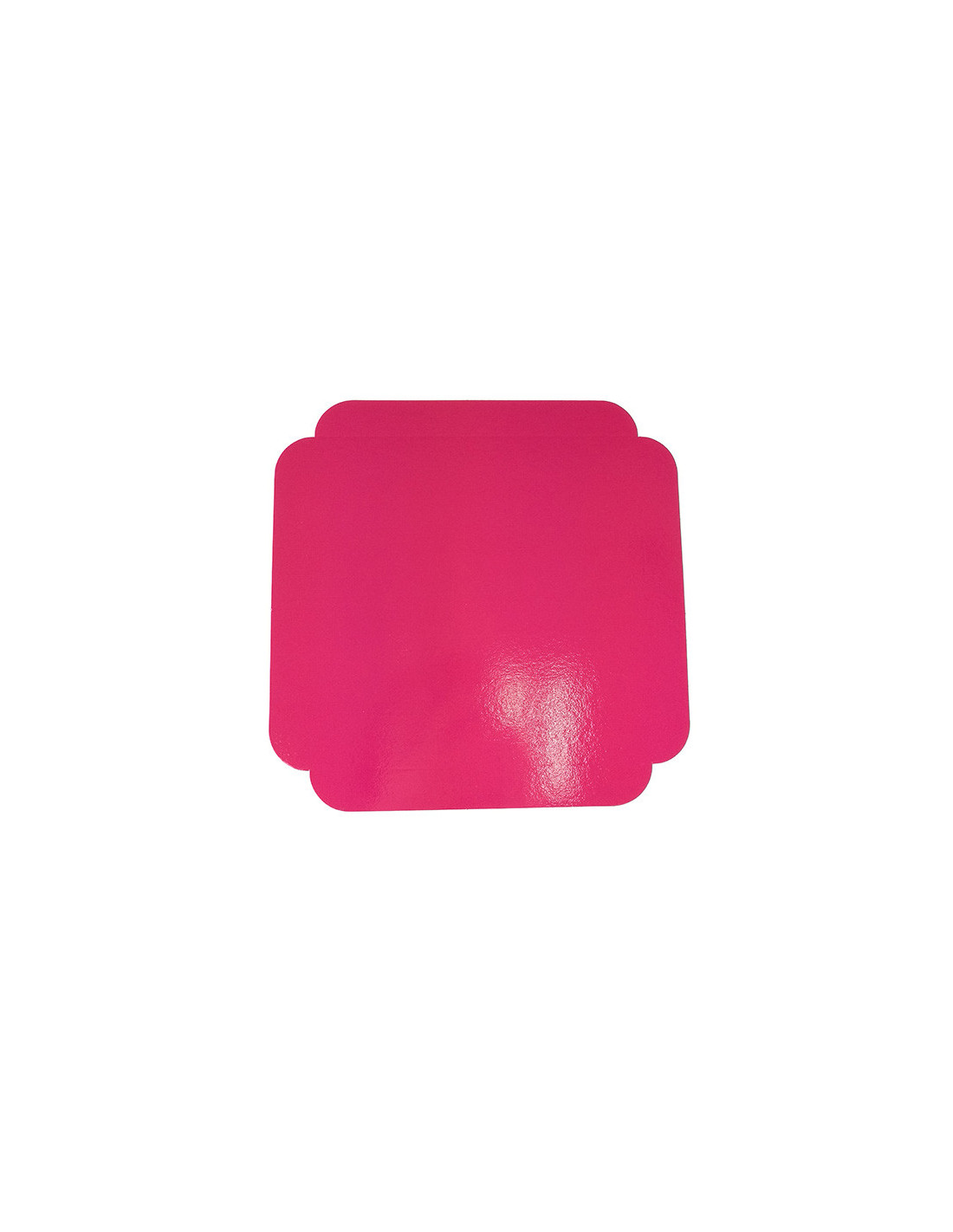 Cartón cuadrado fucsia/negro para presentación de pastelería. Medidas: 17 × 17 + 2 cm. Pack de 50 unidades.