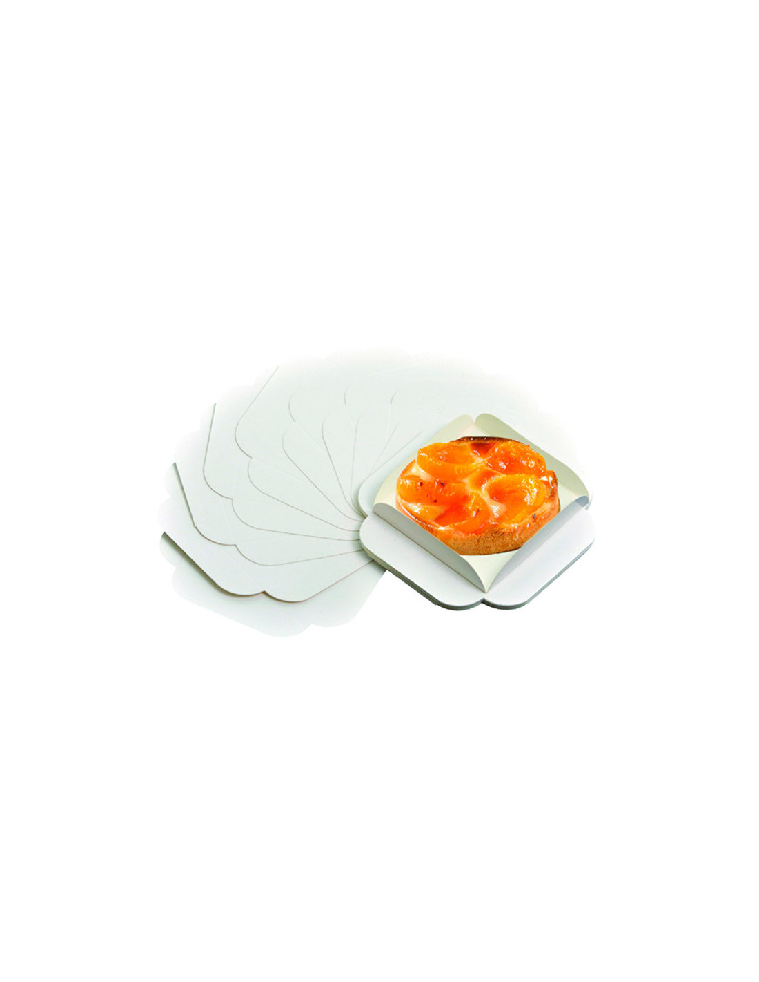 Cartón ranurado cuadrado de 13 cm + 3 cm. Pack de 250 unidades. Ideal para presentación de postres y monoporciones.